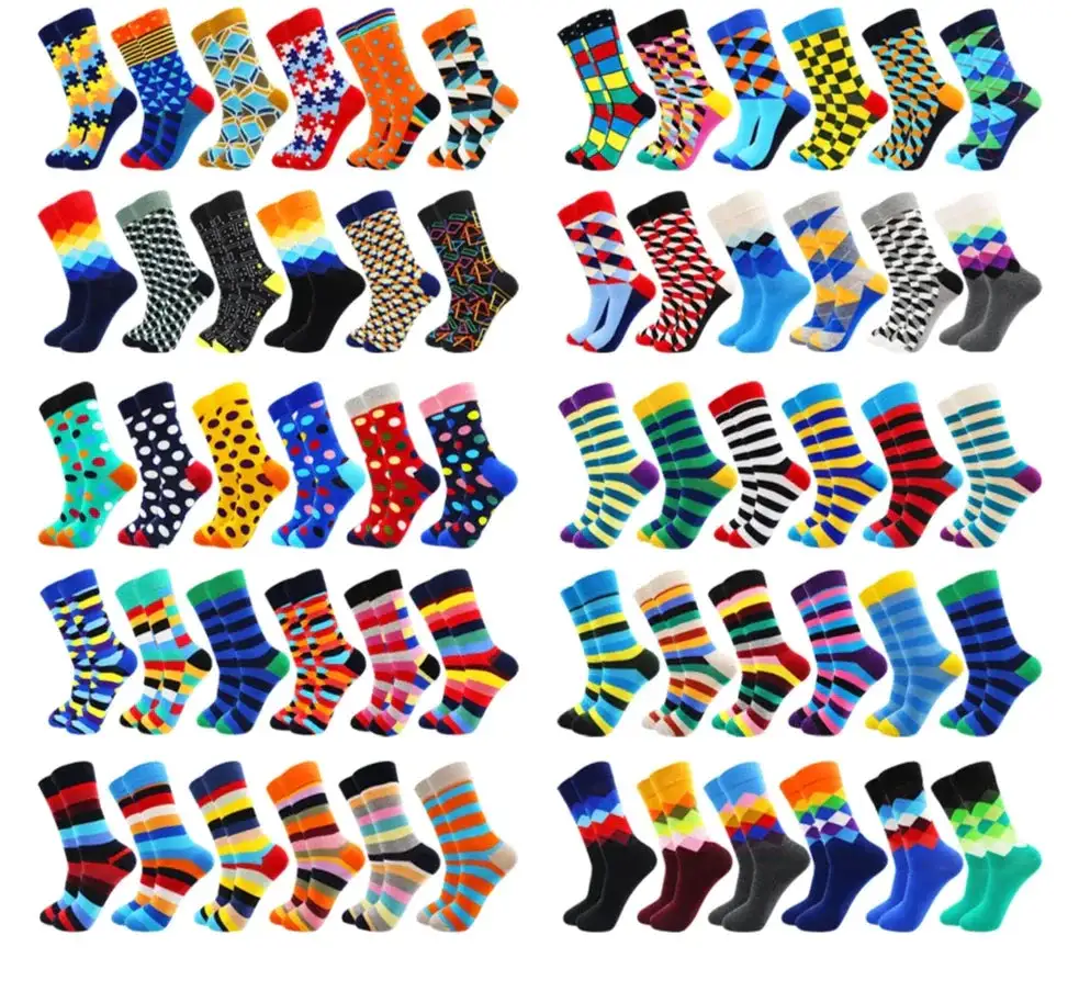 3 Pairs Colorful Cotton Casual Funny Stripe Grid Geometry Fun Dress Socks