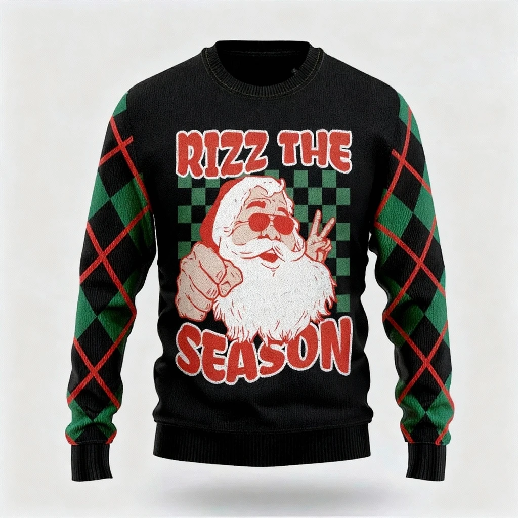 Colorful Santa Claus Print - Maximalist Christmas Print Ugly Sweater