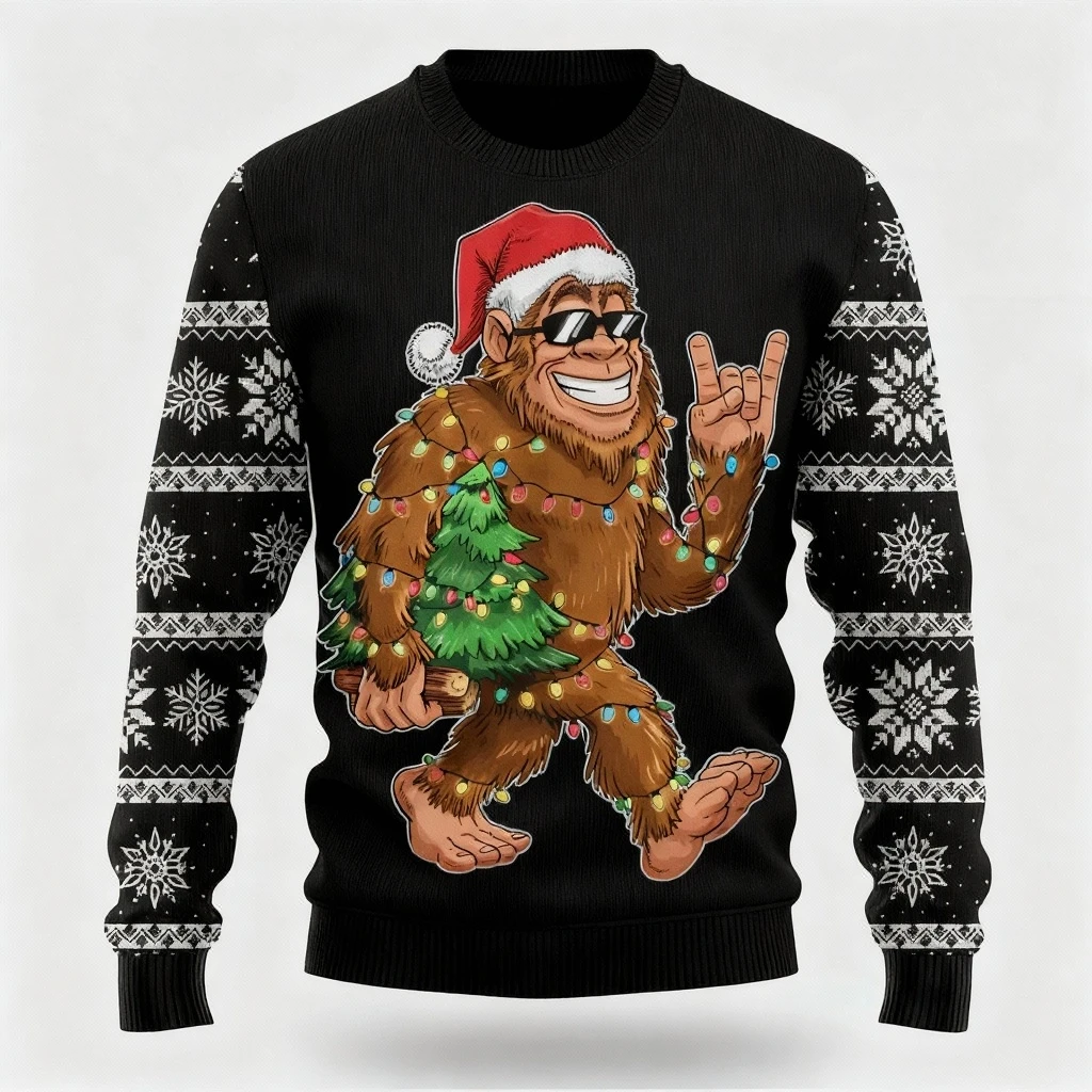 Funny Xmas Character Print - Ugly Christmas Icon Mash-Up Ugly Sweater