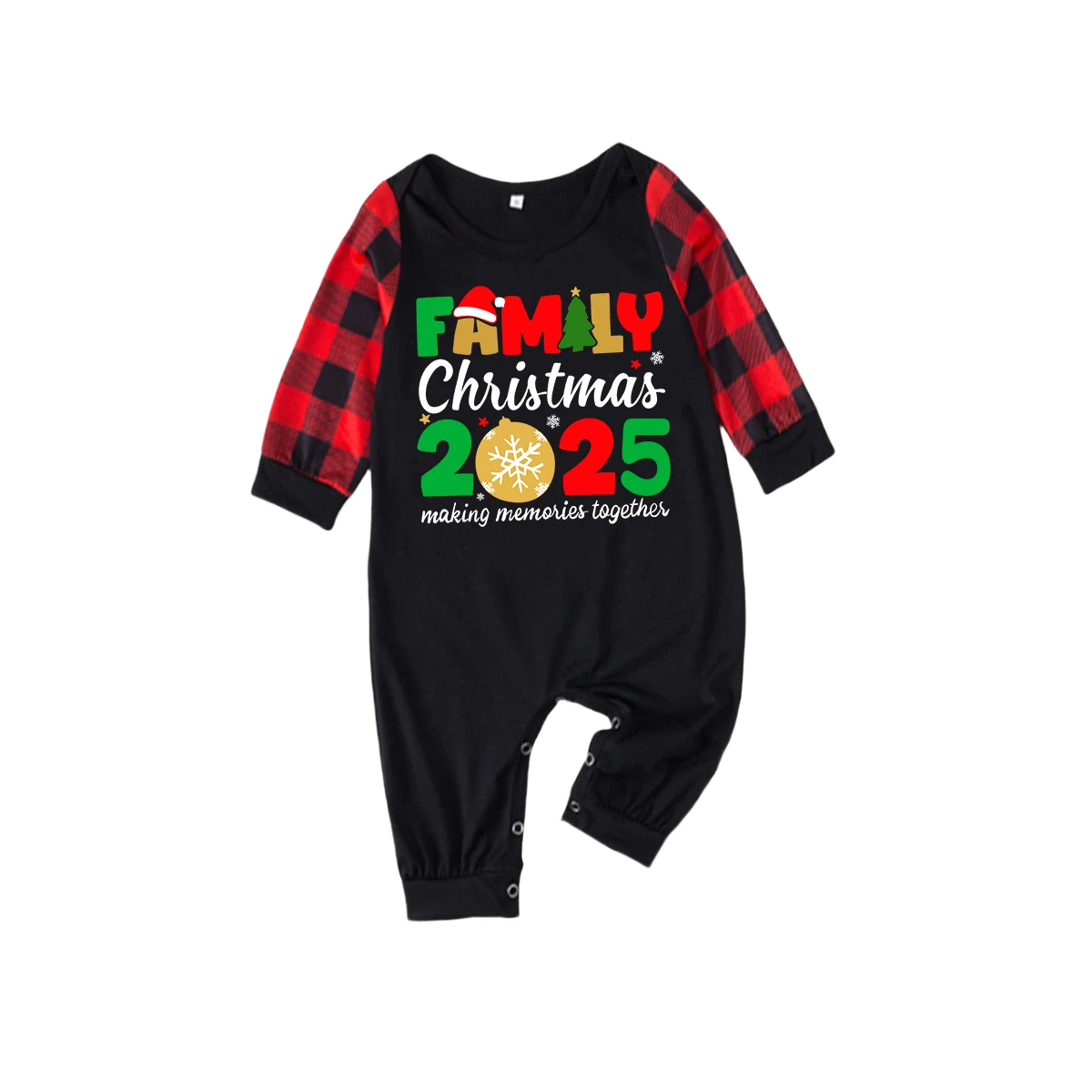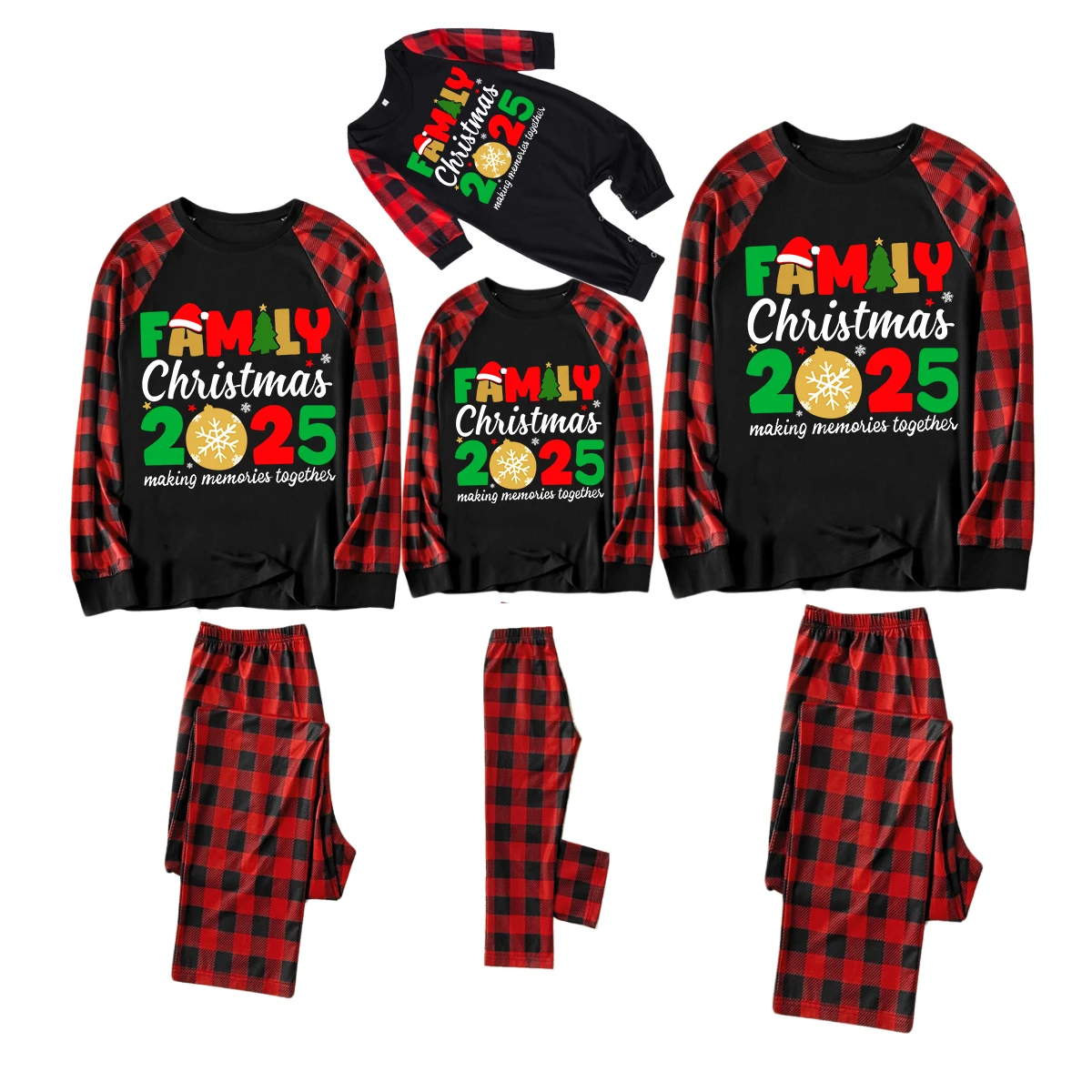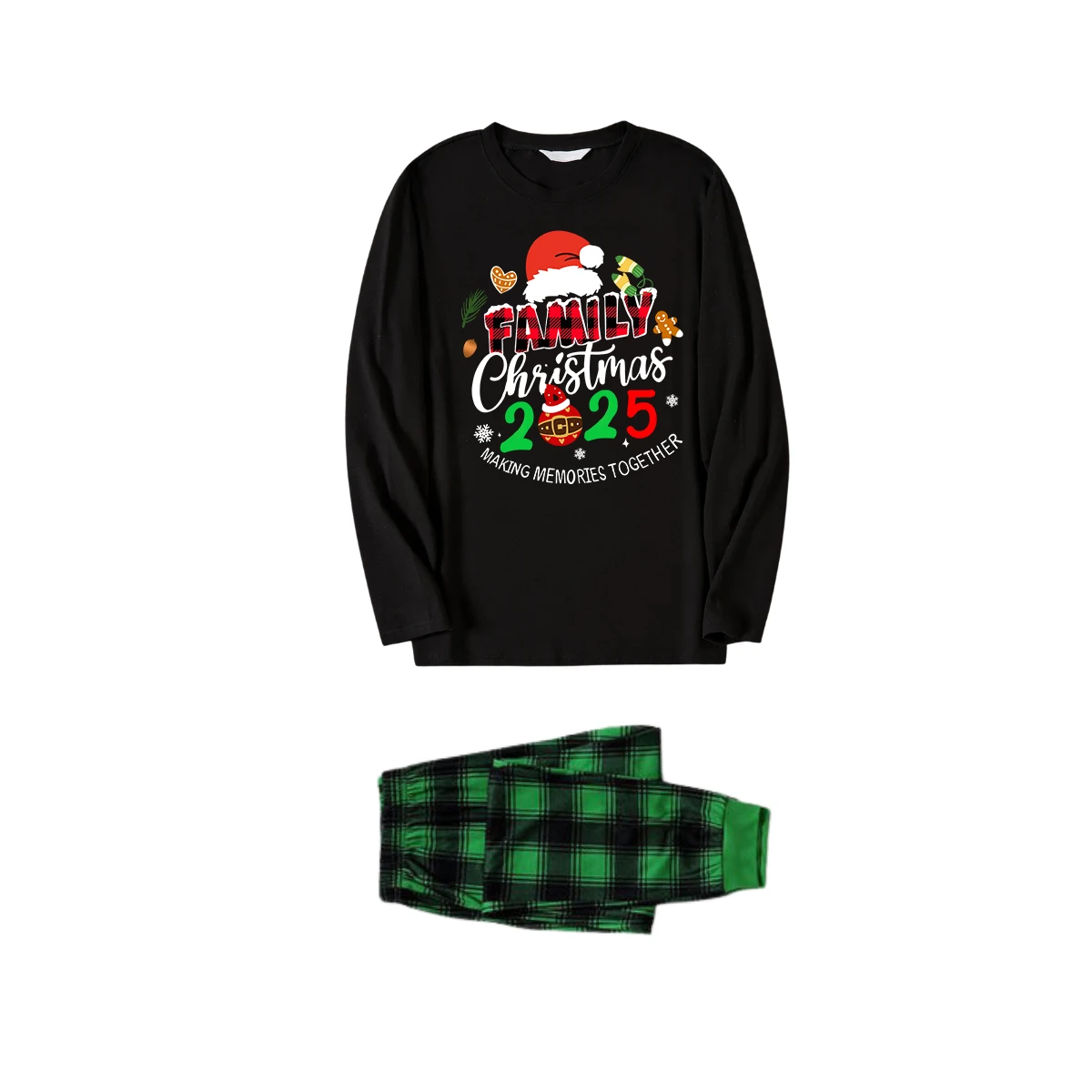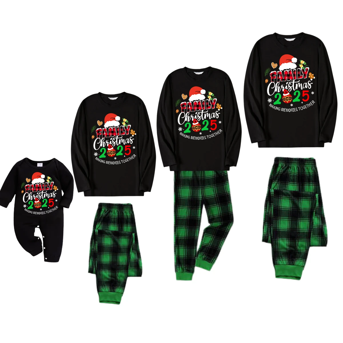 "Making Memories Together Christmas 2025" Print Black and Green Plaid Pants Family Matching Pajamas