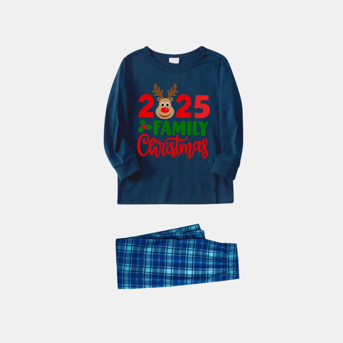 "2025 Family Christmas" Moose Letter Print Blue Plaid Christmas Matching Pajamas
