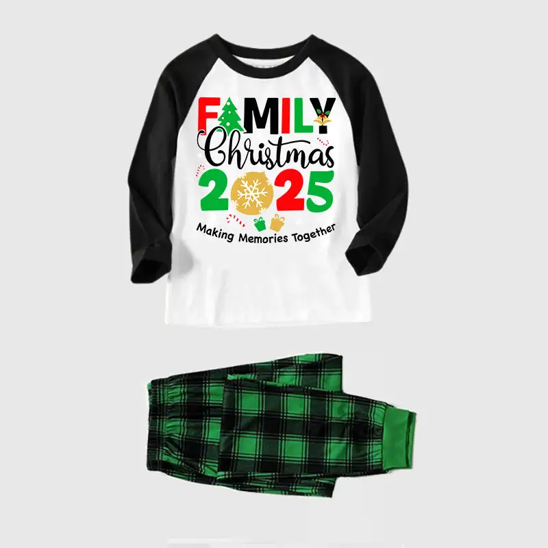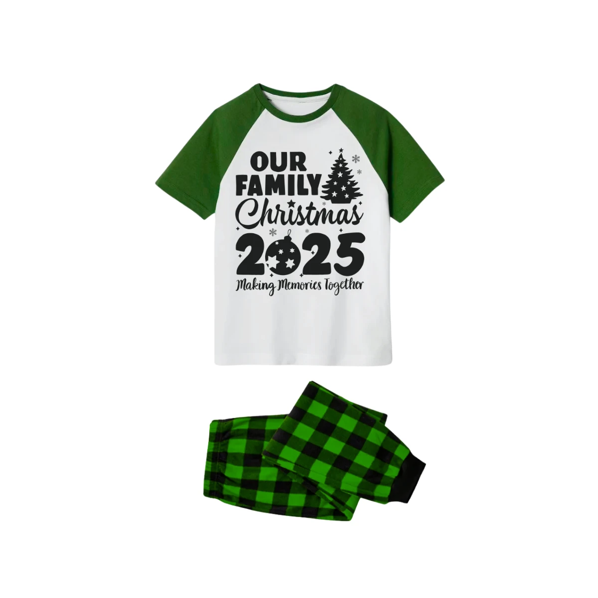"Family Christmas 2025 Making Memories Together" Printed Green and Black Plaid Christmas Family Pajamas