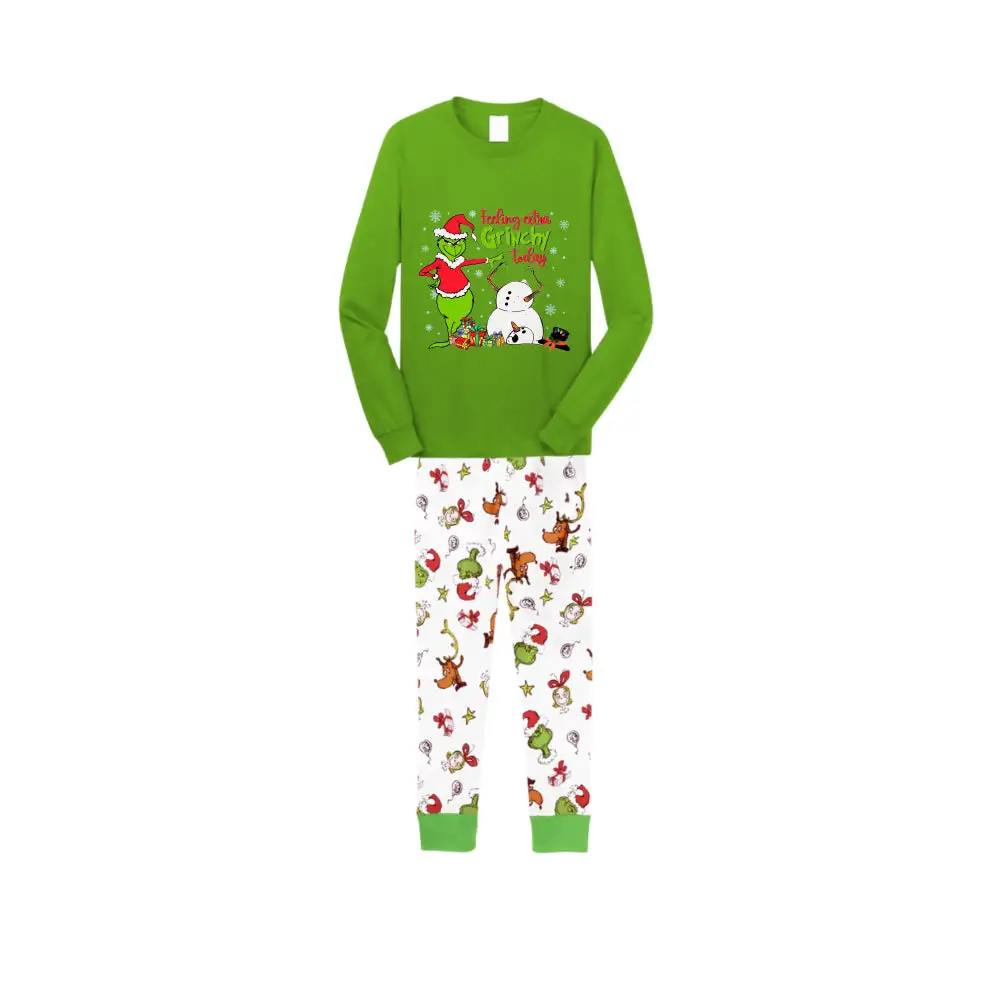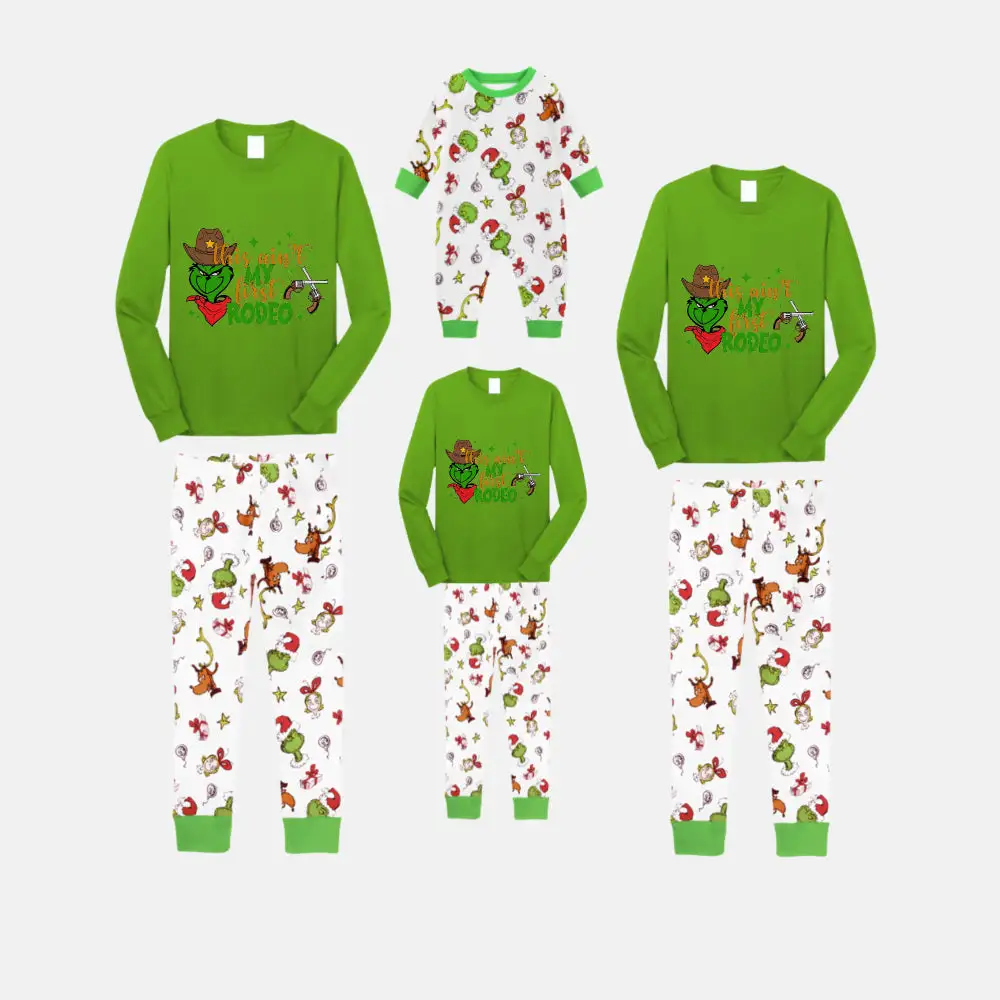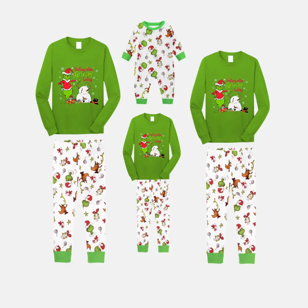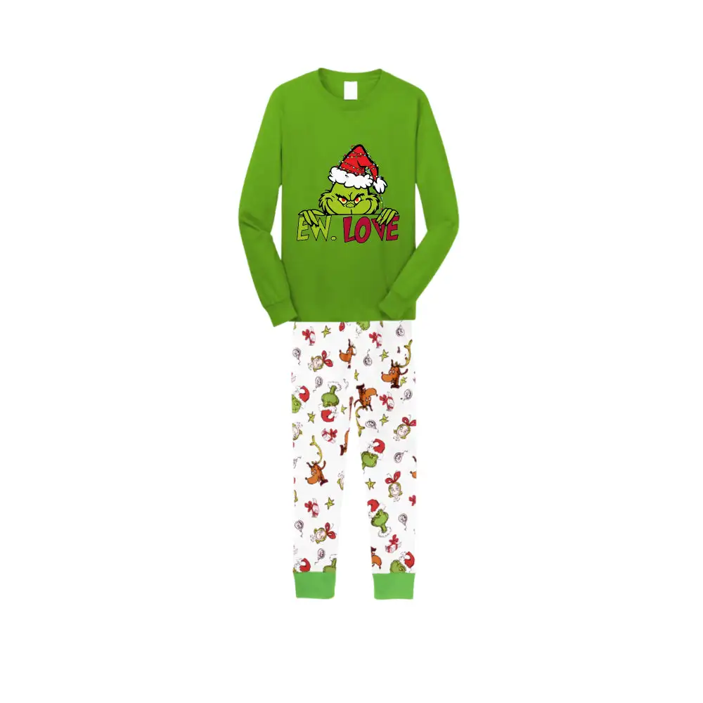 Christmas Family Matching Pajamas-Green Top and Grinch Pants Pjs Set with Grinch and "Ew Love" Print