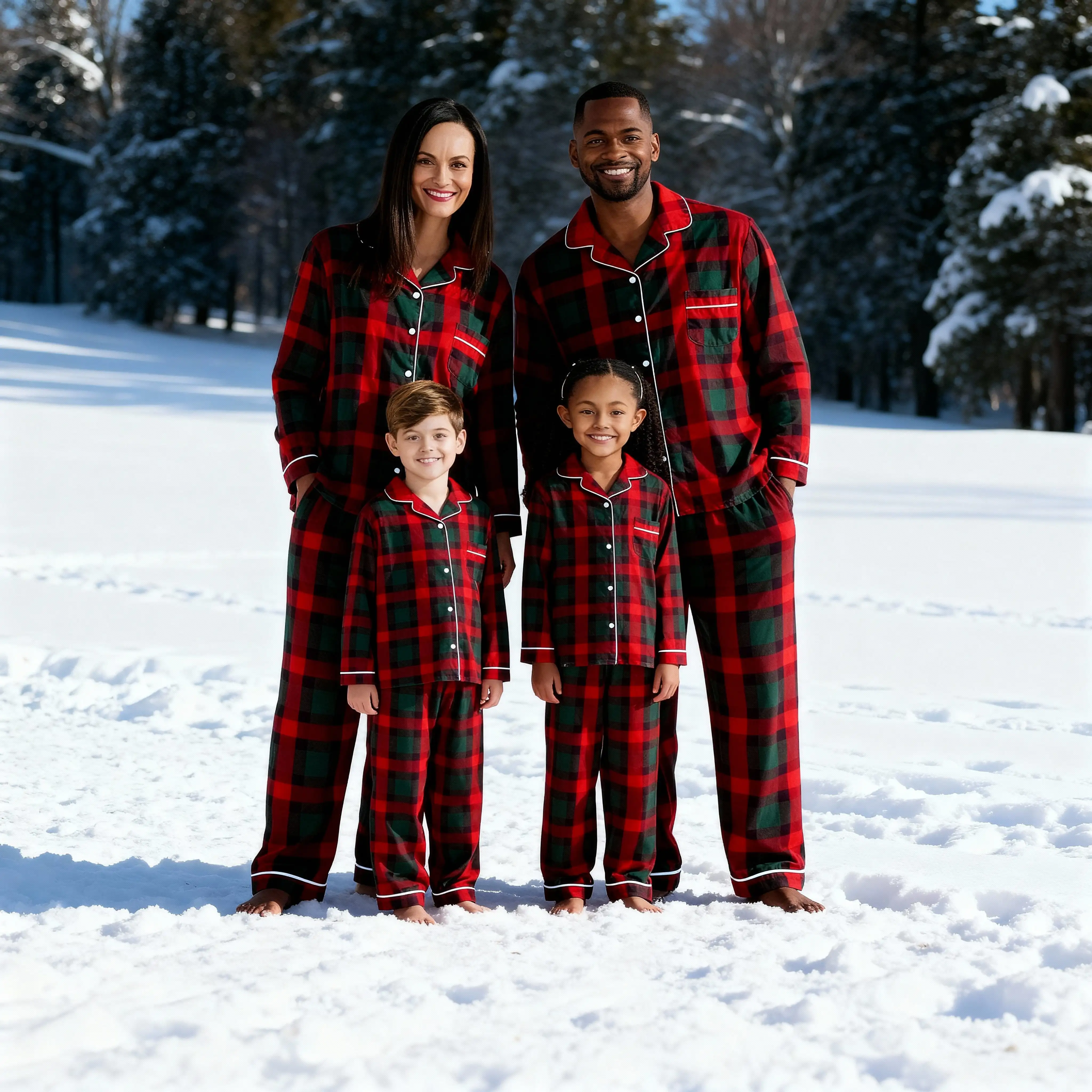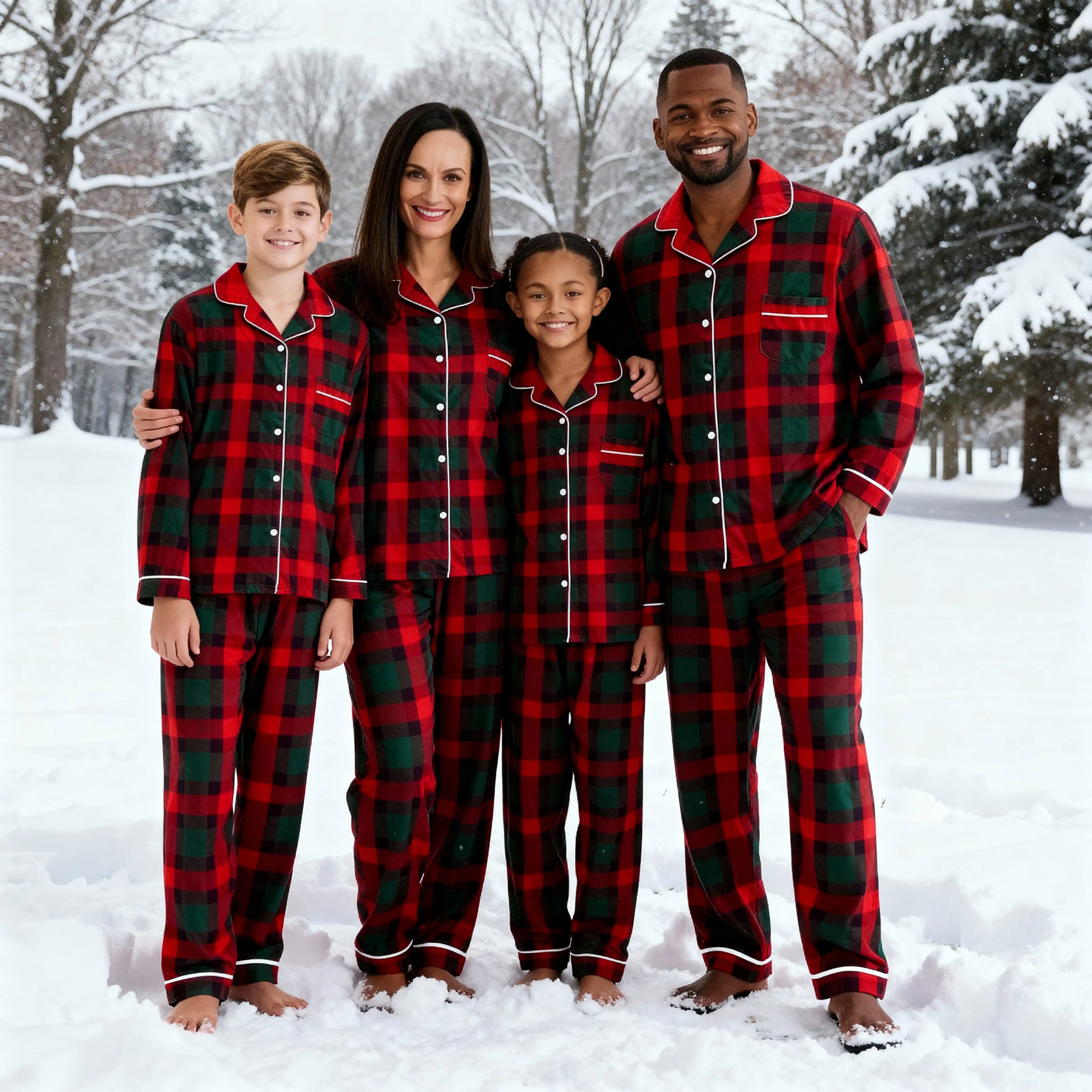 Matching Christmas Red and Green Plaid Button Up Family Pajamas Sets