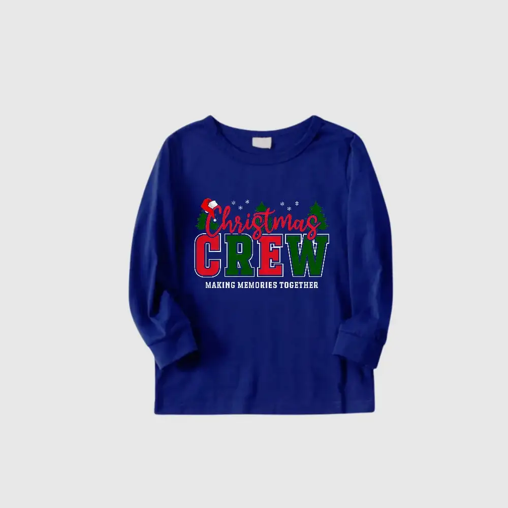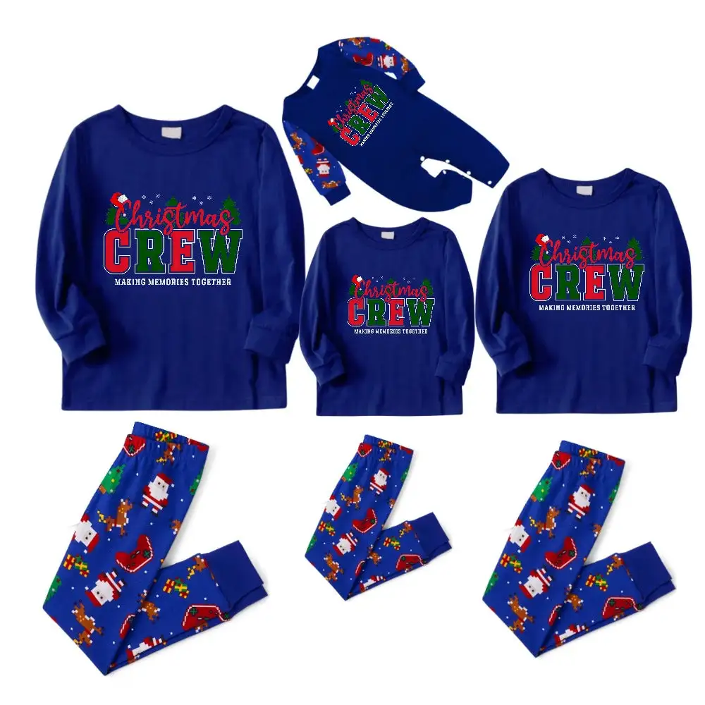 Christmas Family Matching Pajamas-Cozy Blue Pjs Set with "Christmas Crew Making Memories Together" Slogan Print