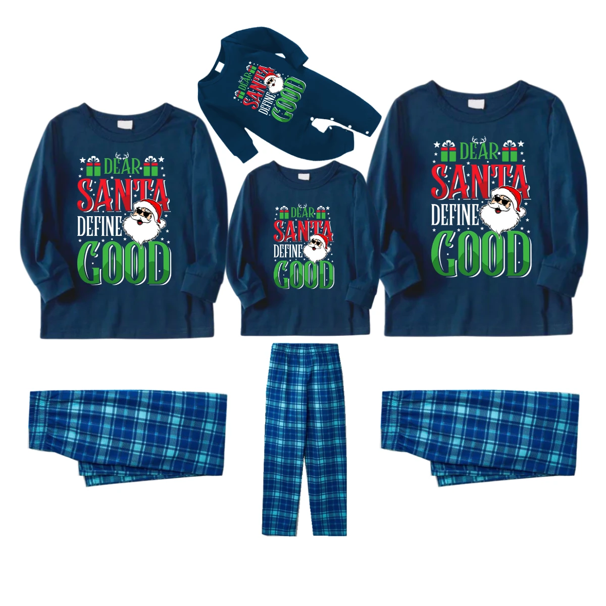"Dear Santa Define Good" Slogan Printed Blue Plaid Family Matching Pajamas