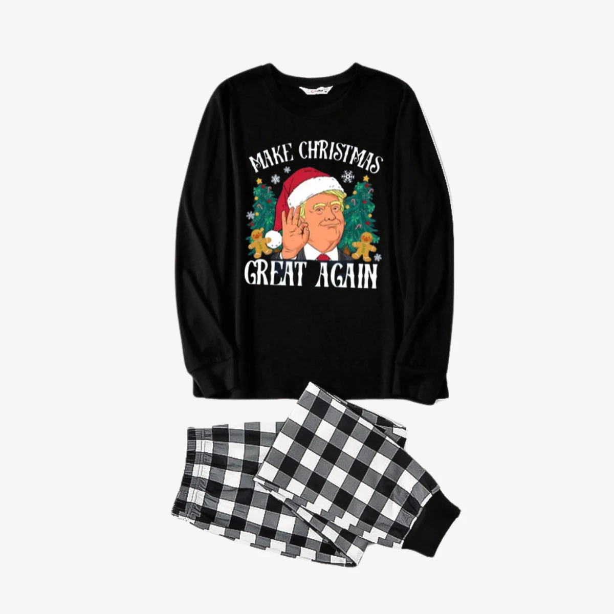 "MERRY CHRISTMAS GREAT AGAIN" Letter Printed Black and White Plaid Family Pajamas Sets