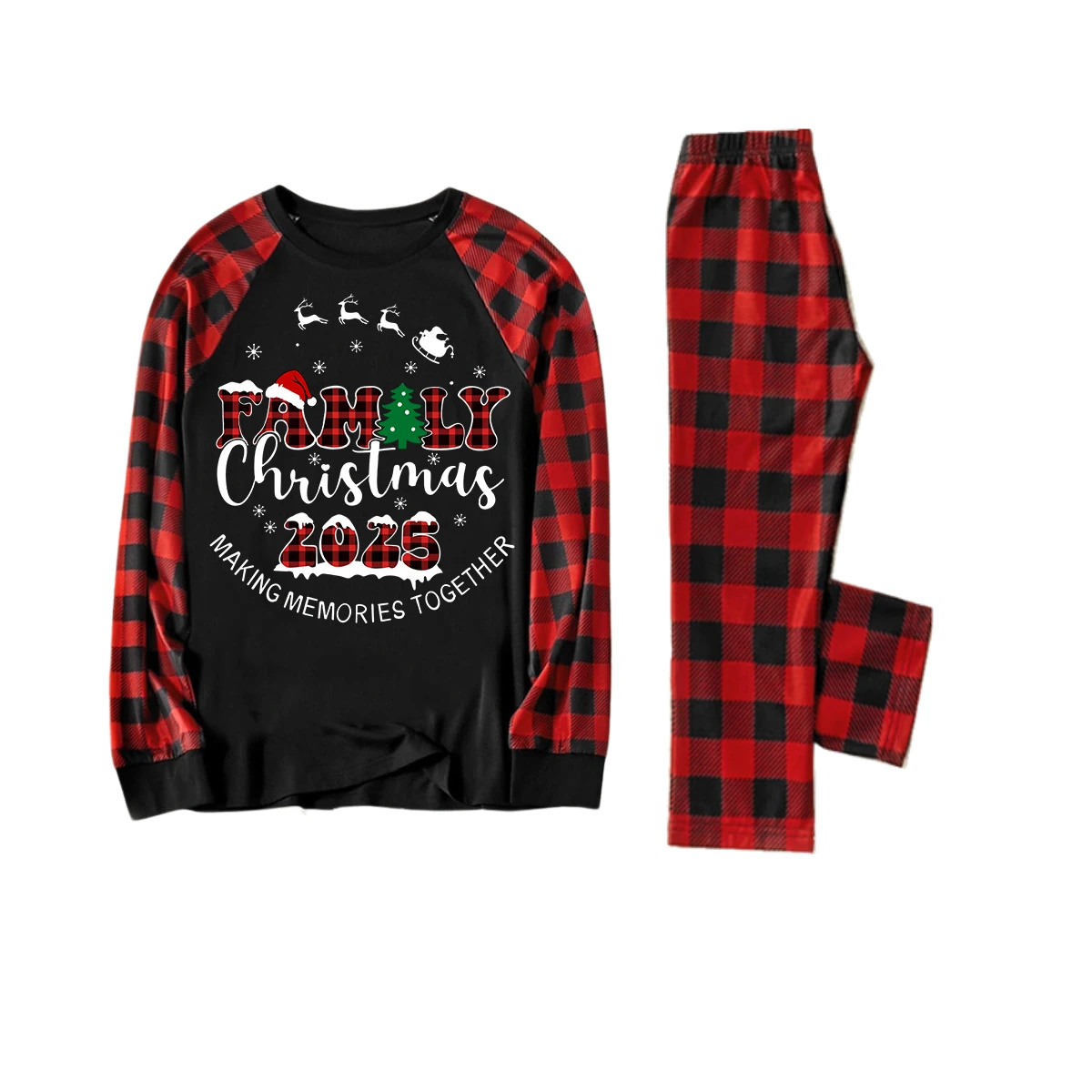 Family Christmas 2025 Family Pajamas Set - Black Top Red Pants Red Plaid Pattern Christmas Letter Print