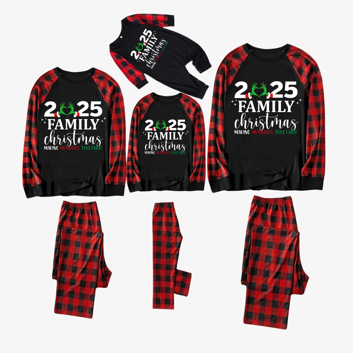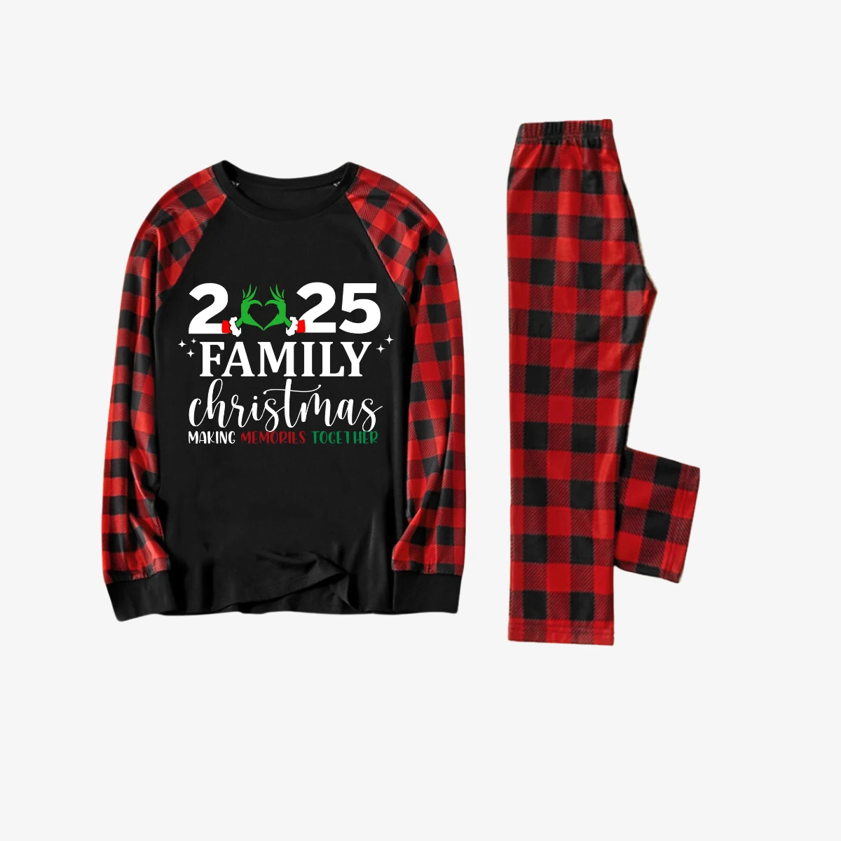 "2025 Family Christmas" Quirky Heart Letter Print Black & Red Plaid Family Matching Black Pajamas