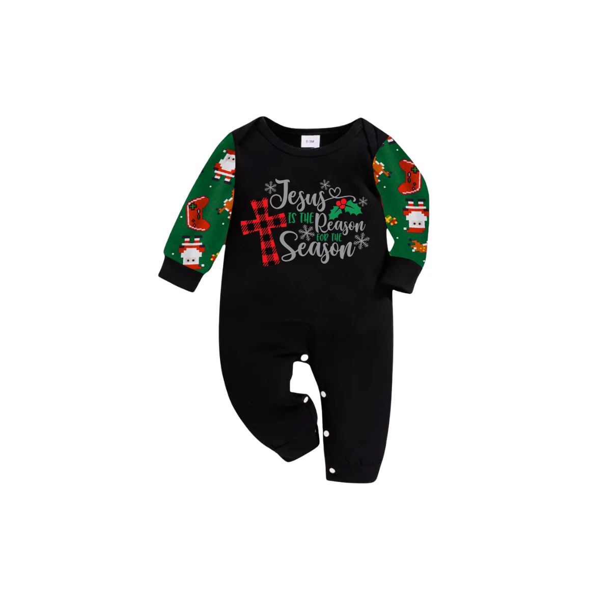 Matching Family Christmas Pajamas Jesus Is the Reason, Green Santa Print