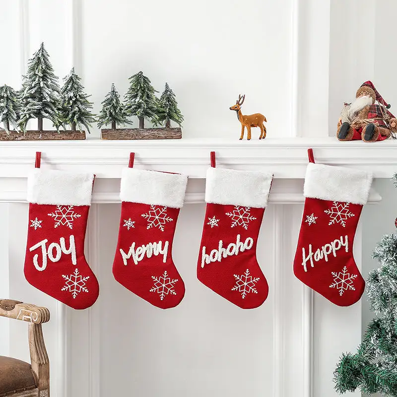 Christmas Party Decorations Letter Snowflake Embroidered Red Plush Christmas Socks Gift Bags