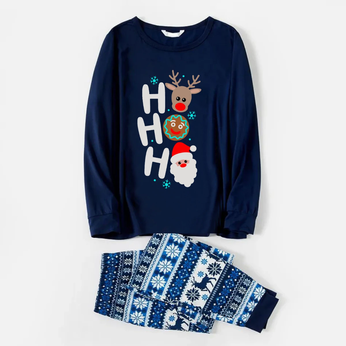 HO HO HO Text and Santa Claus Print Blue Family Christmas Matching Pajamas