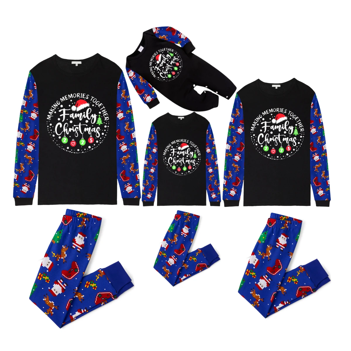 Making Memories Together Family Christmas 2025 Family Pajamas Set - Black Top, Blue Pants, Blue Christmas Cartoon Sleeves