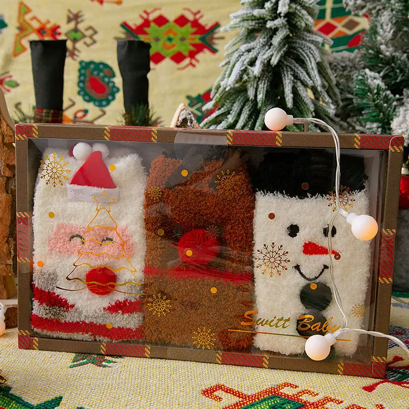 Christmas Mid Calf Socks Thickened Warm Coral Fleece Socks New Year Socks Gift Box