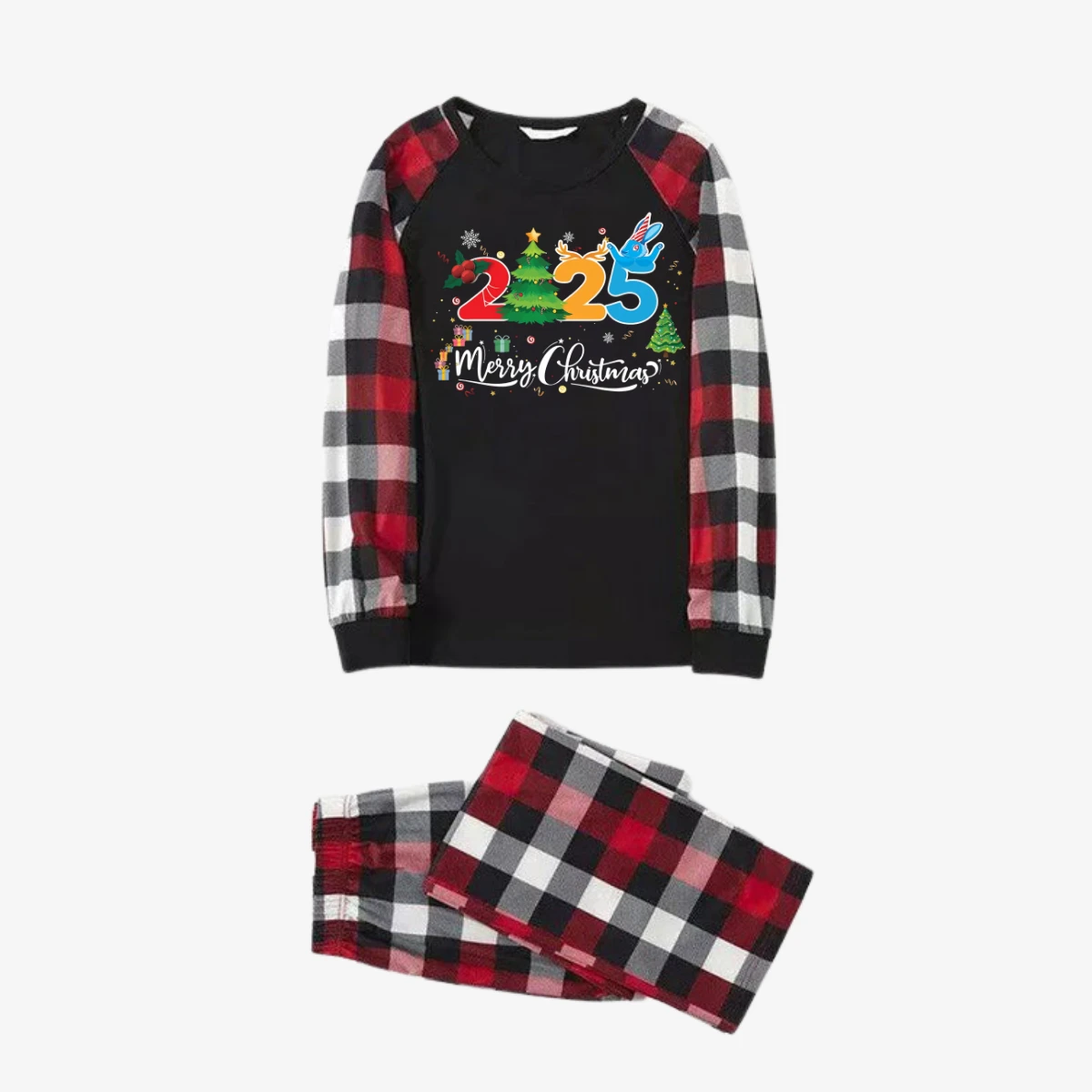 Red and Gray Plaid Christmas Pajamas Set With "2025 Merry Christmas" Text Print
