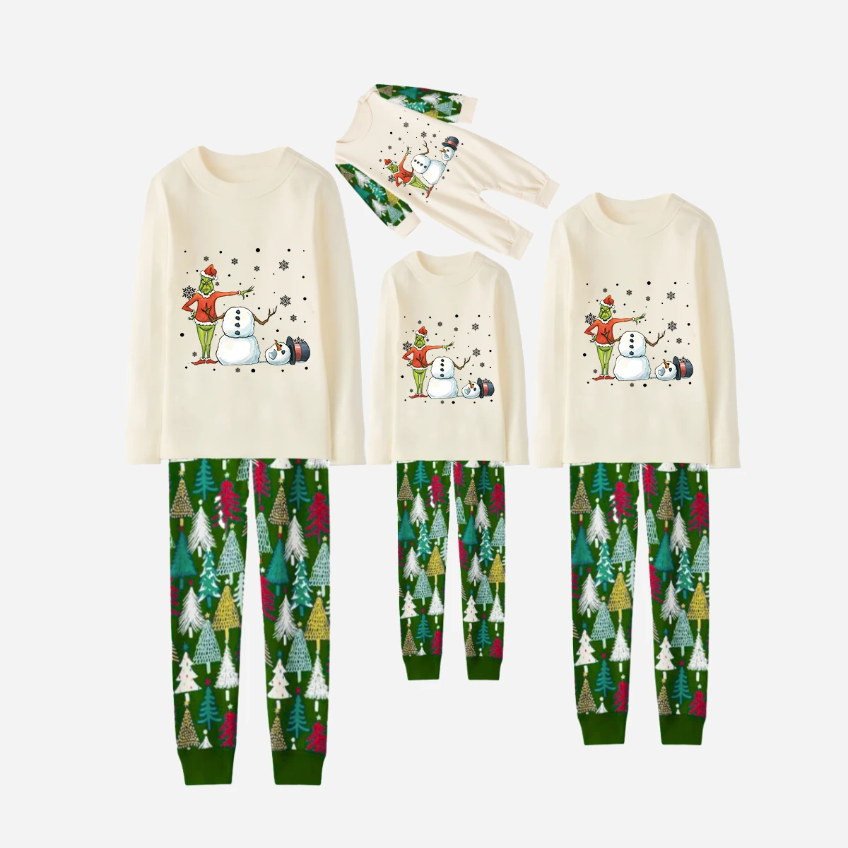 Family Christmas Pajamas Set With Snowman and Christmas Grinch Print
