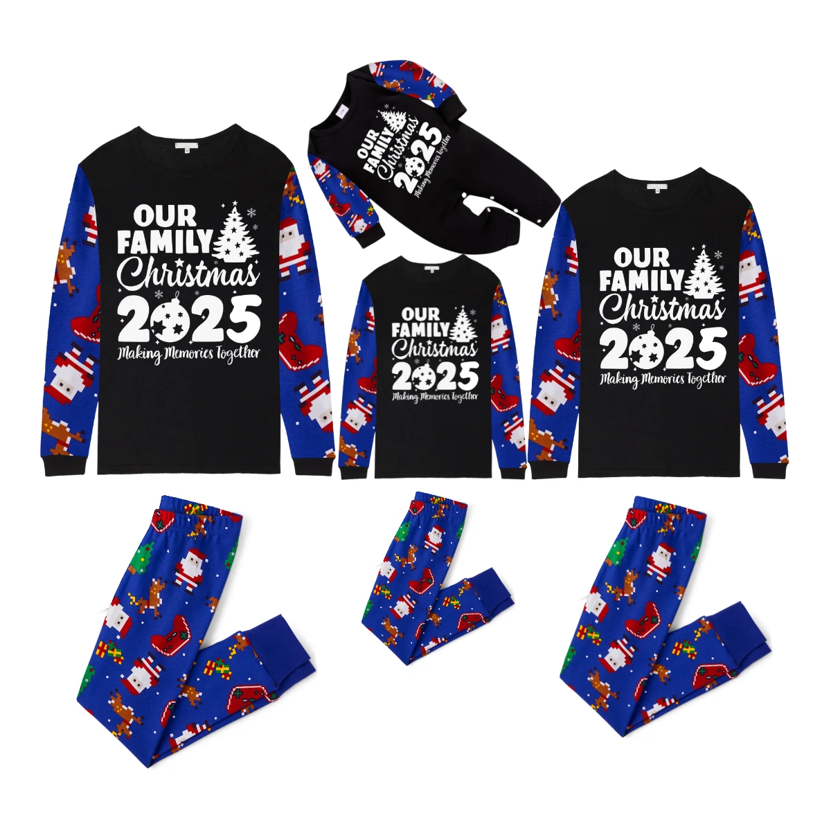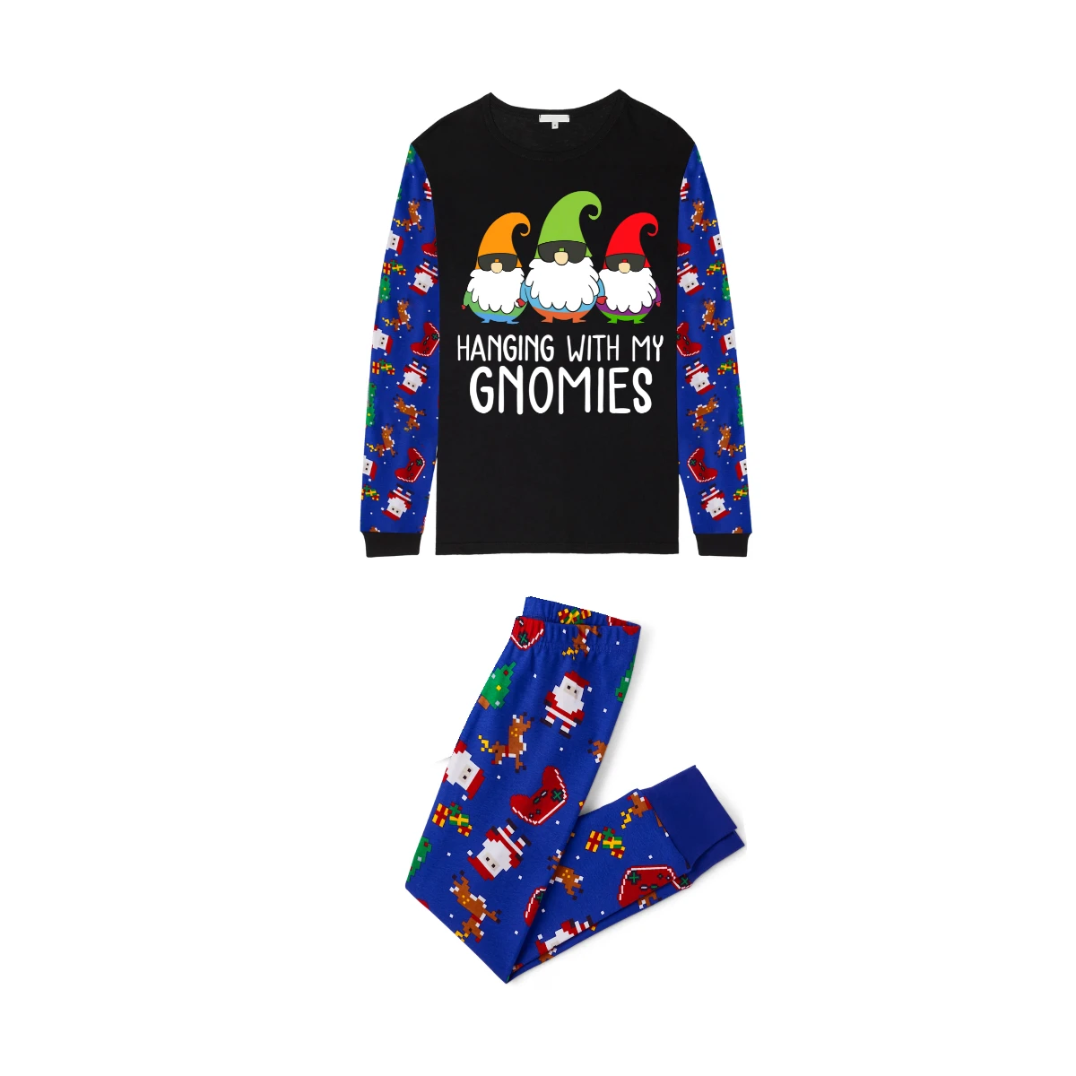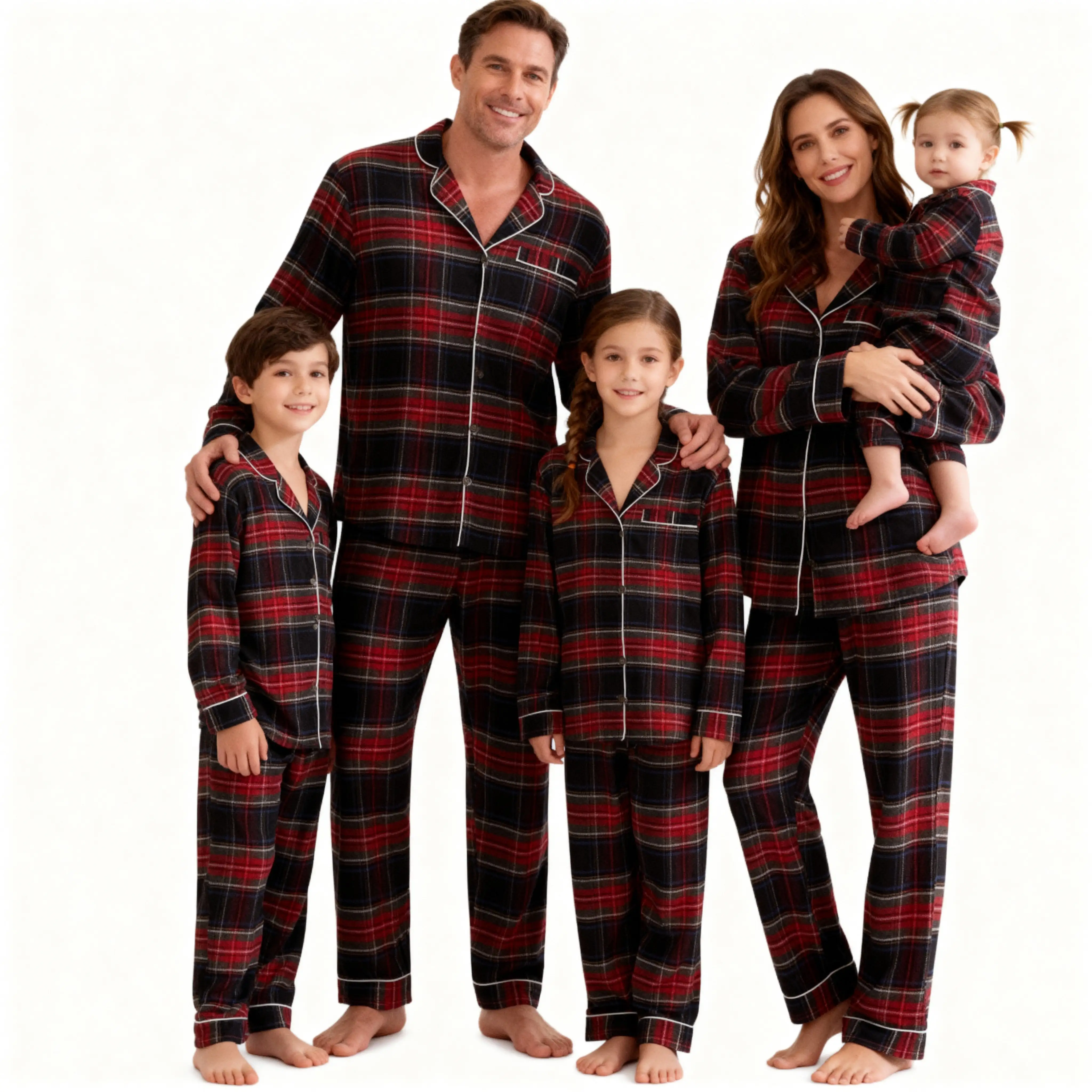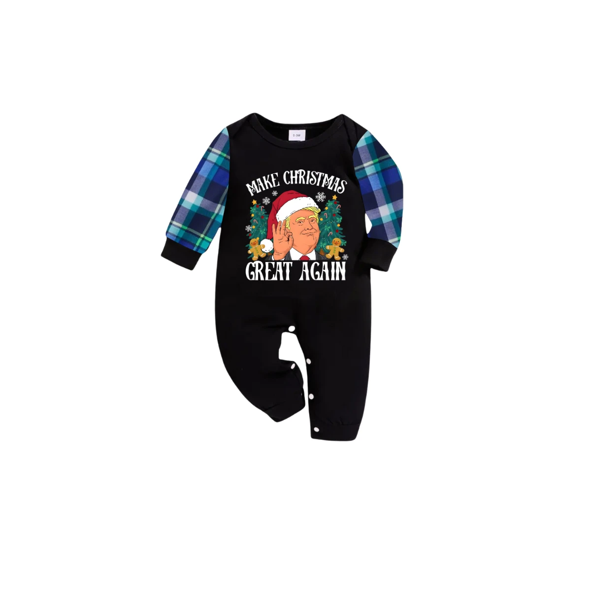 Christmas Cartoon Trump Make Christmas Great Again Family Pajamas Set - Black Top, Navy Pants, Plaid