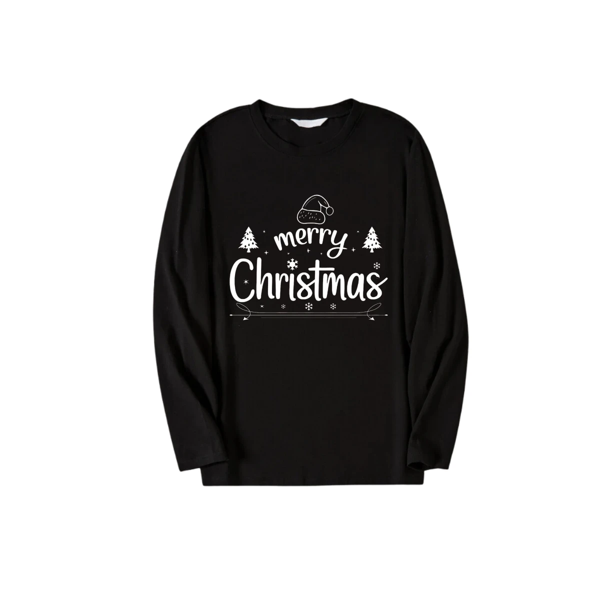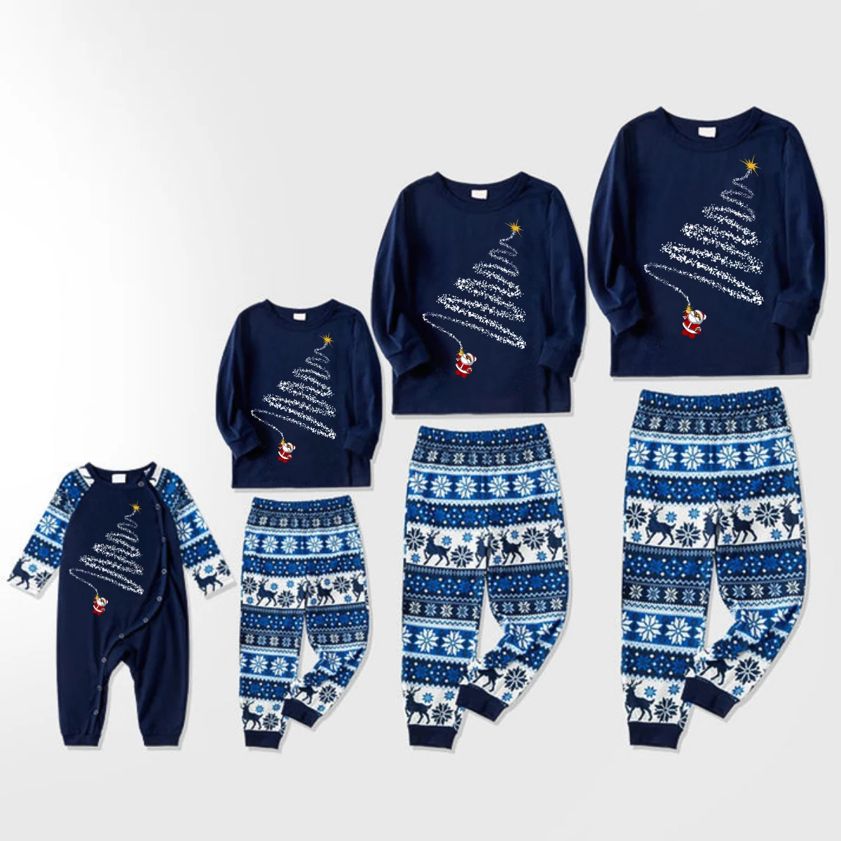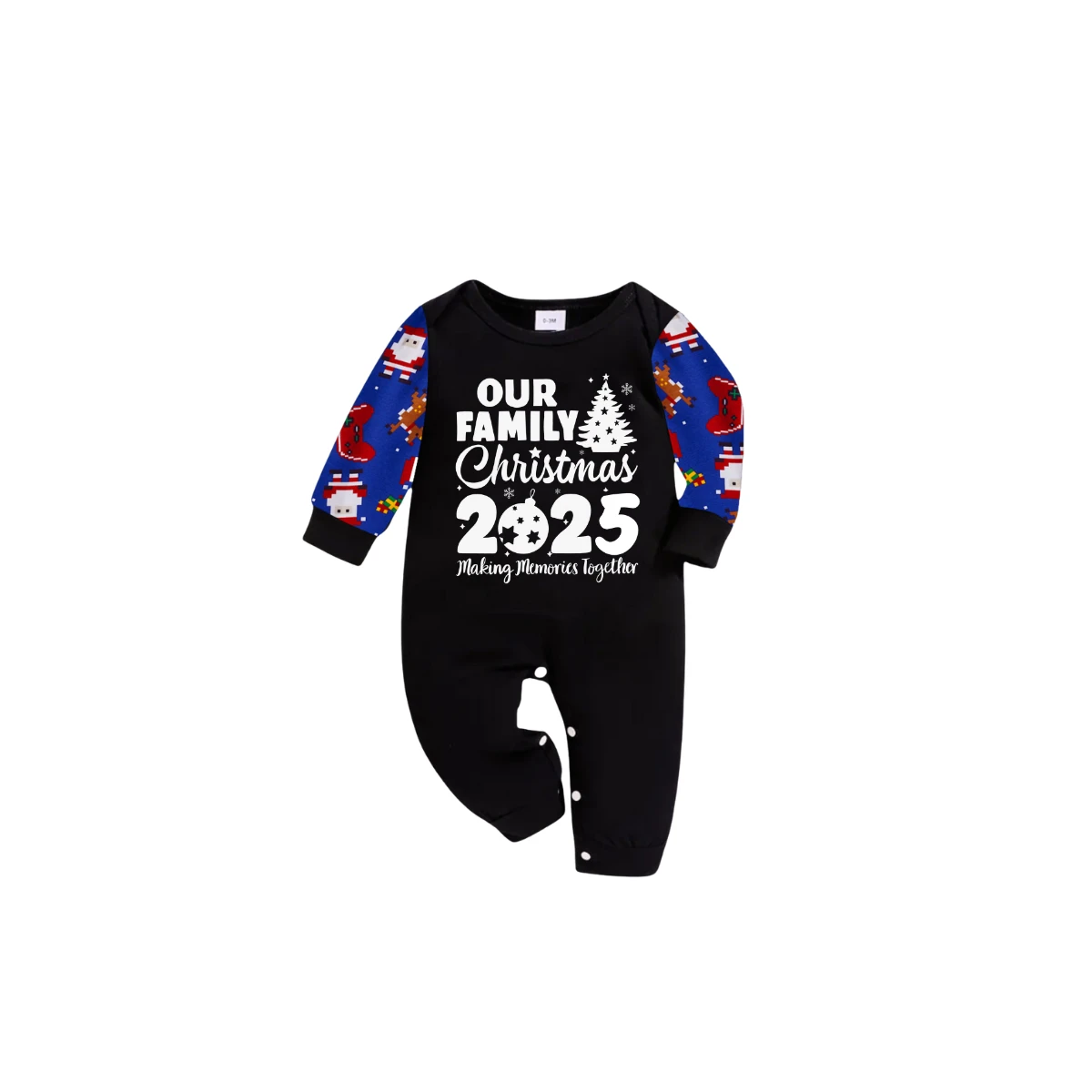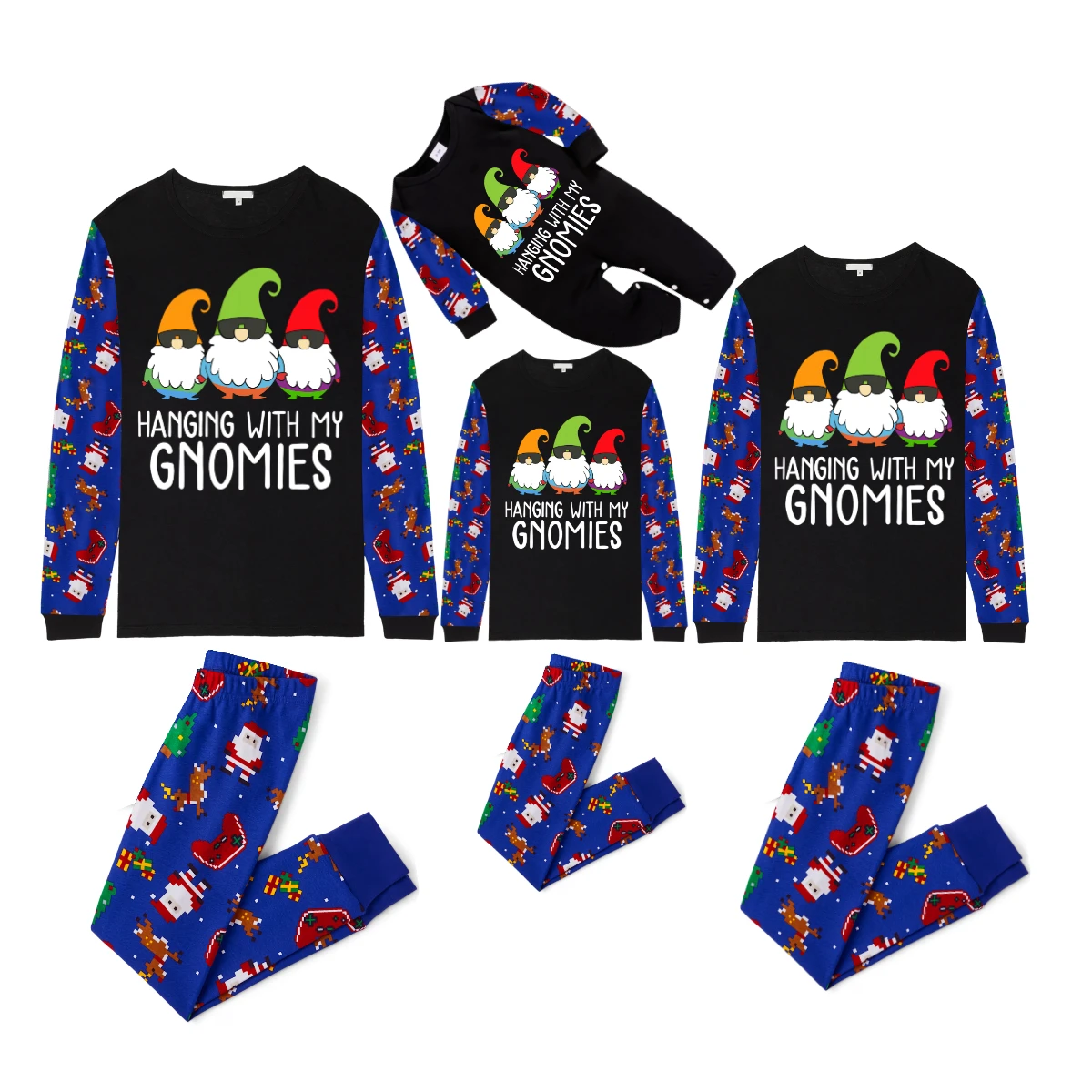 Christmas Cartoon Trump Make Christmas Great Again Family Pajamas Set - Black Top, Navy Pants, Plaid
