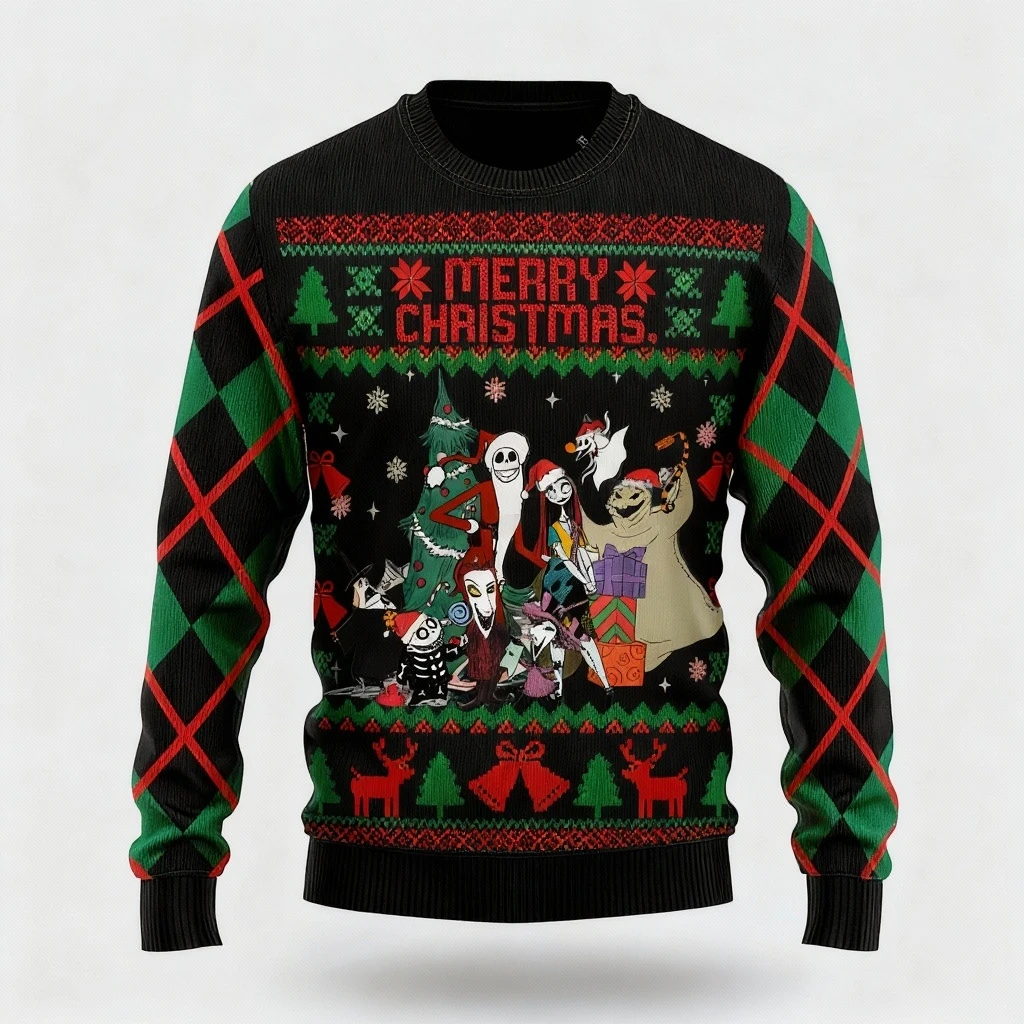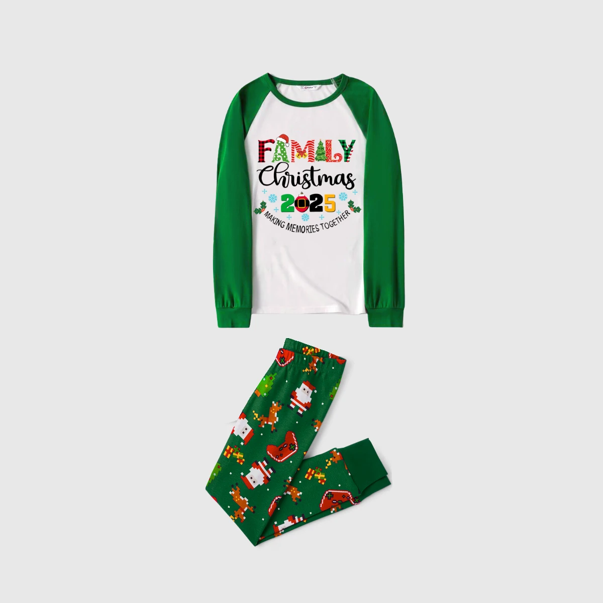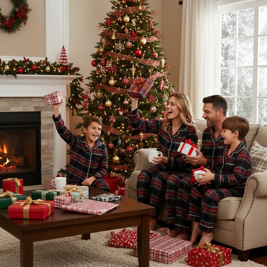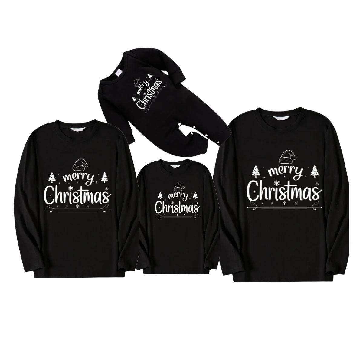 Christmas Cartoon Trump Make Christmas Great Again Family Pajamas Set - Black Top, Navy Pants, Plaid