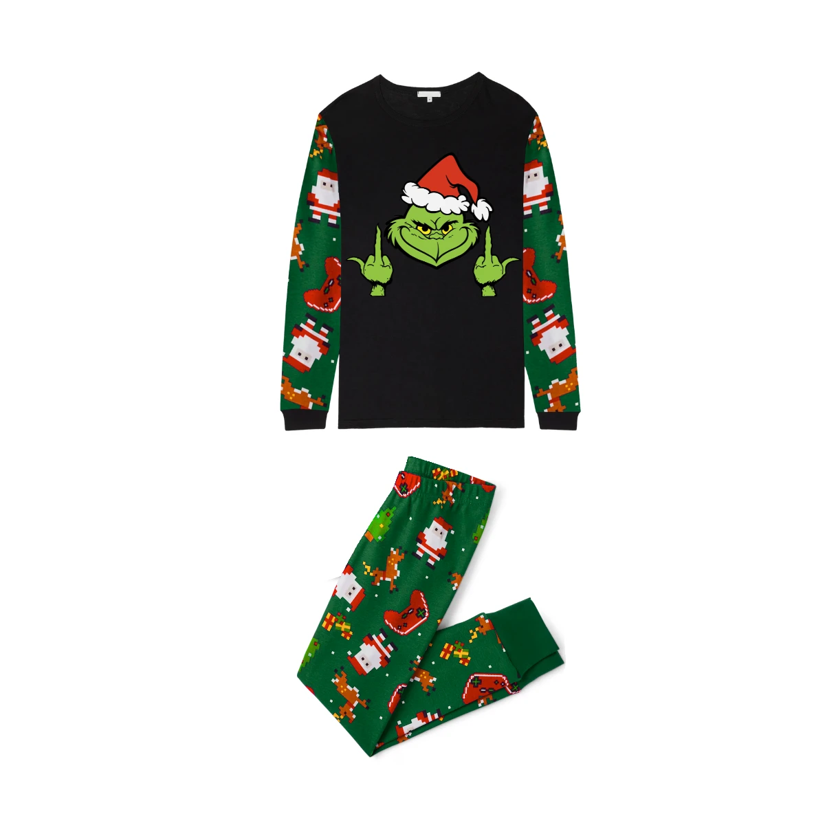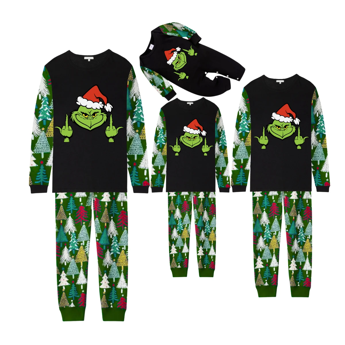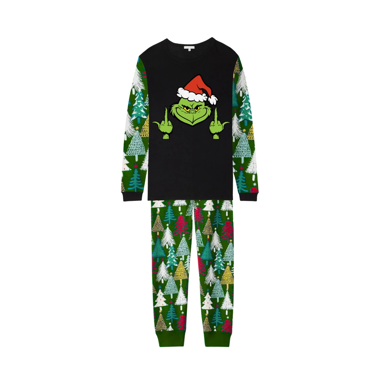 Family Christmas Pajamas Set With "ho ho ho" and Christmas Grinch Print