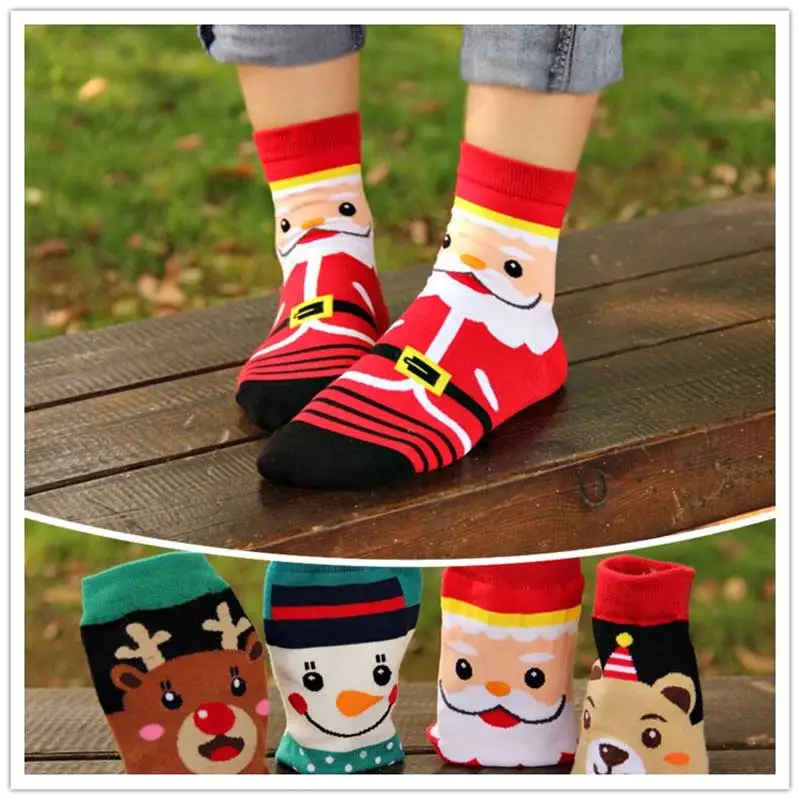 Christmas Female Cartoon Santa Elk Happy Socks 4 Designs Moose Funny Winter Ankle Cotton Socks