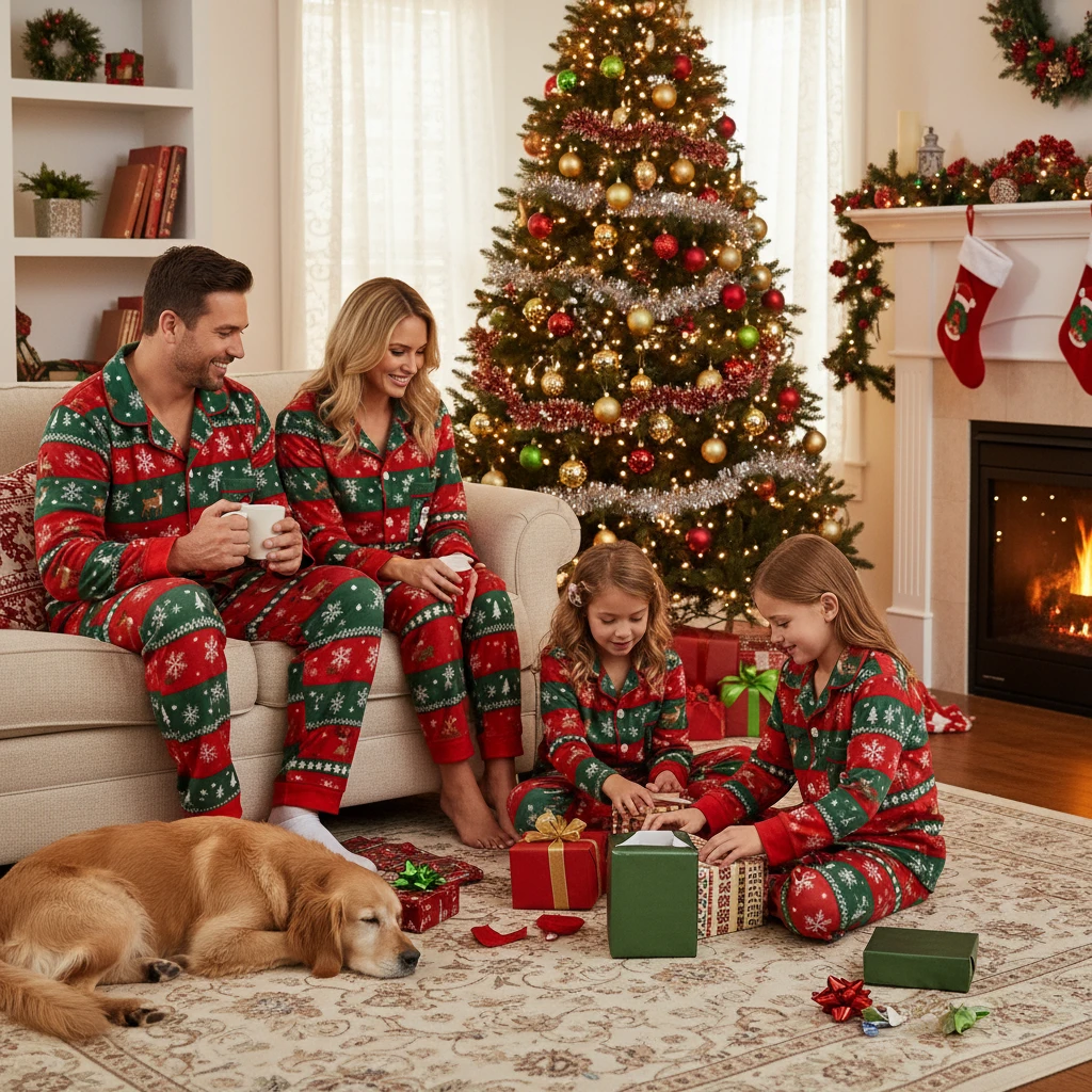 Joyful & Coordinated Satin Family Christmas Pajamas Set