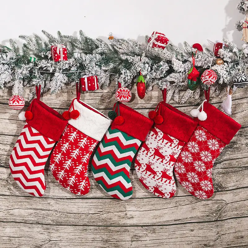 Christmas Tree Ornaments Knitted Woolen Christmas Socks Candy Gift Bag