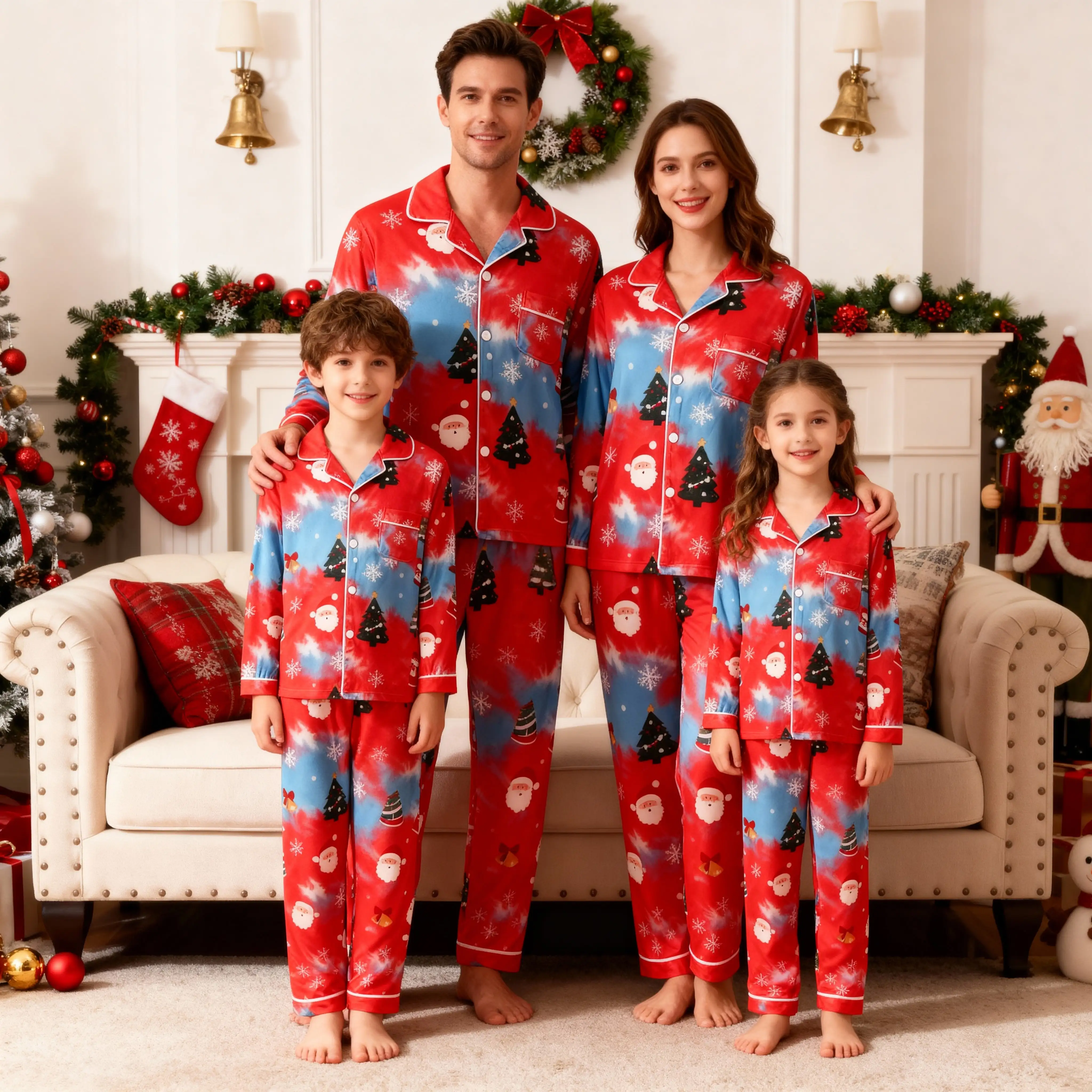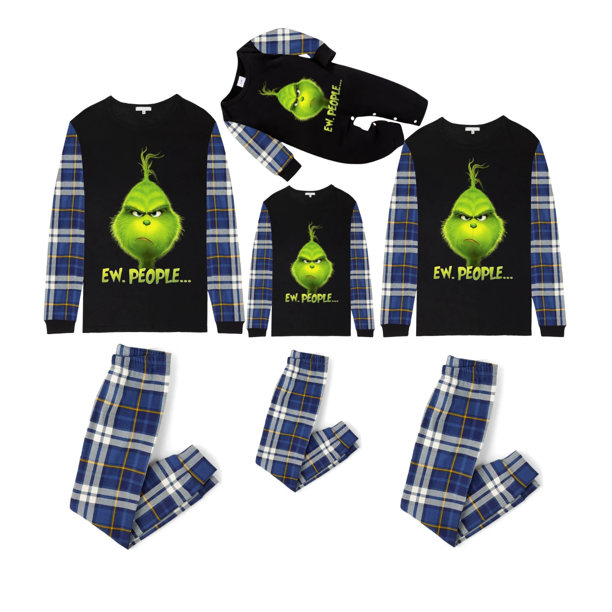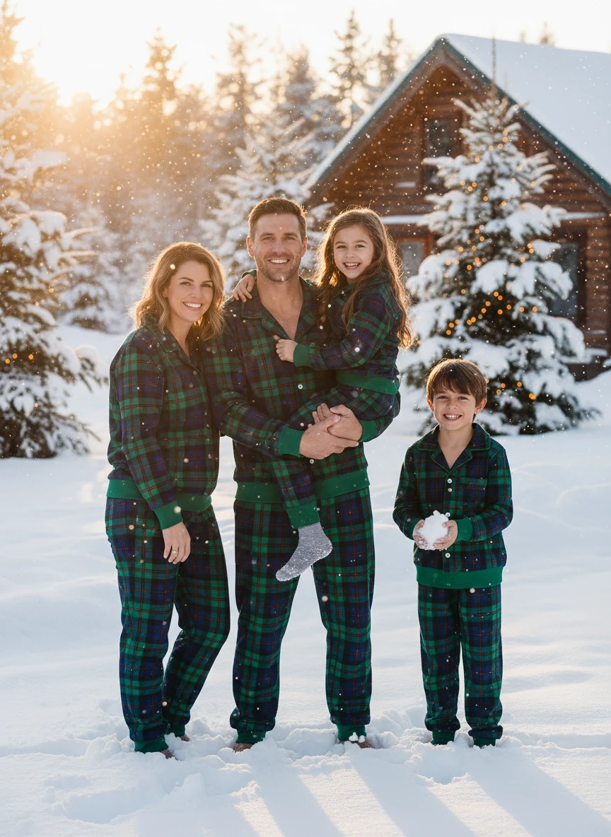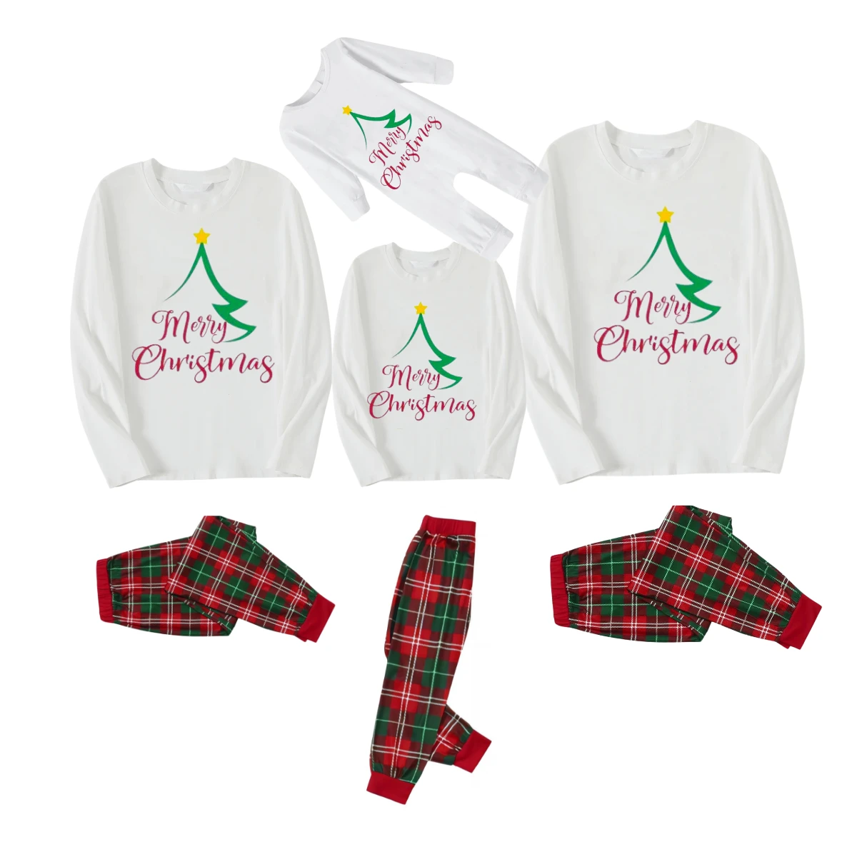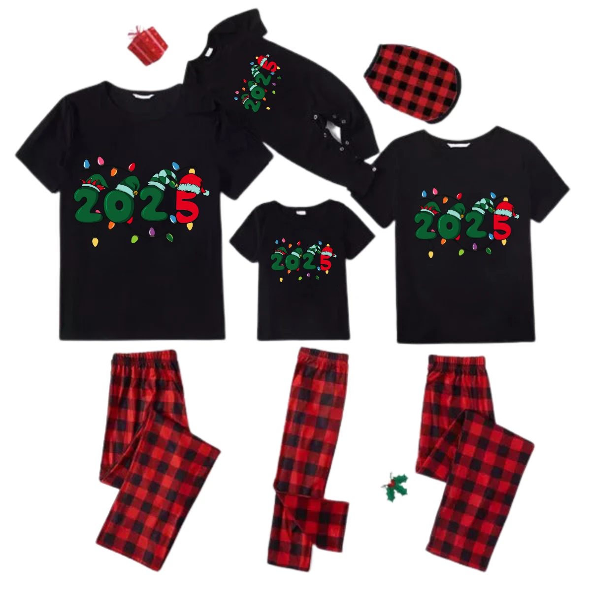Christmas "2025" Letter Print Black Short Sleeve with Red & Black Plaid Pant Family Matching Pajamas