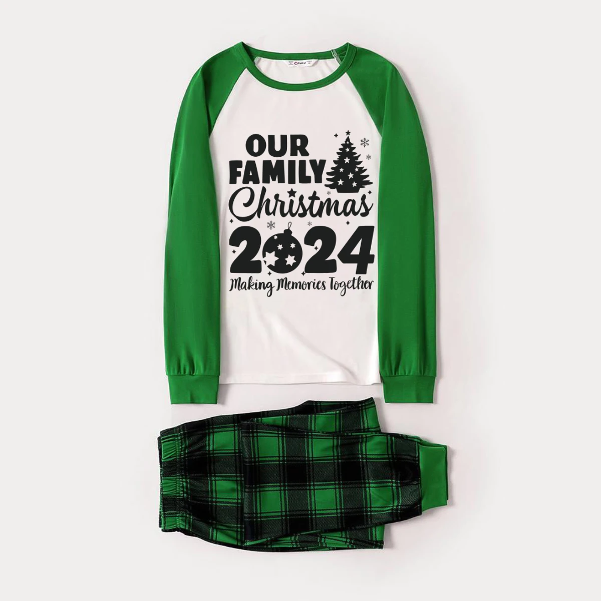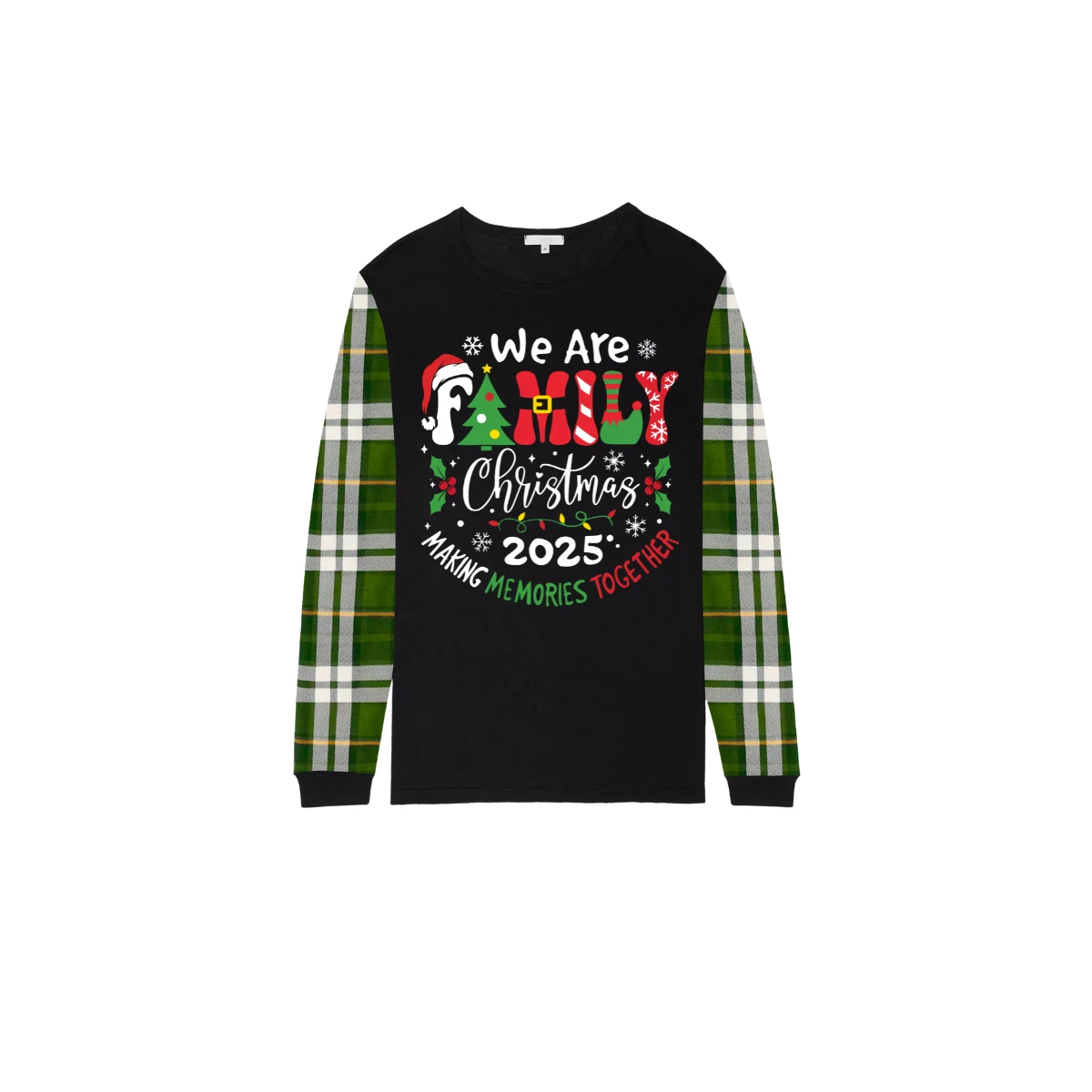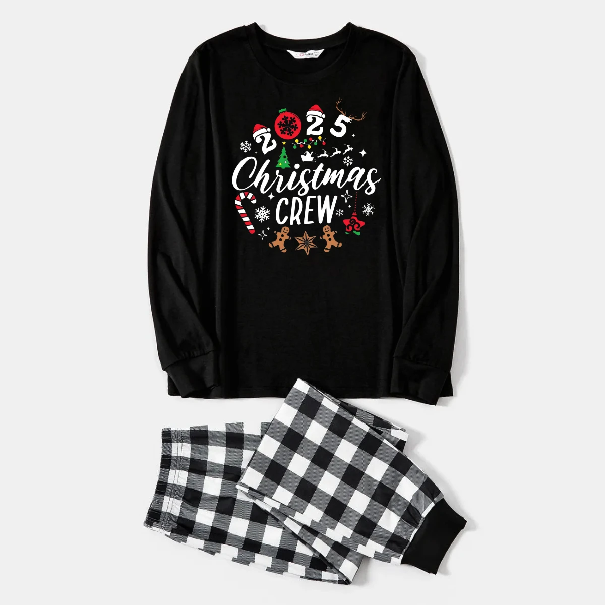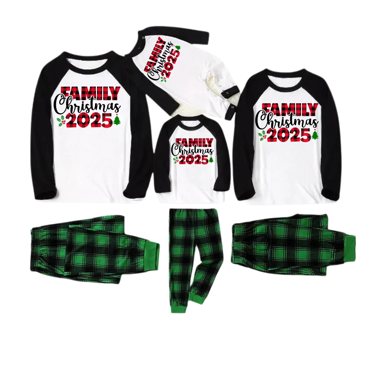 Family Christmas 2025 Text Print Long Sleeve Top With Green & Black Plaid Christmas Matching Pajamas