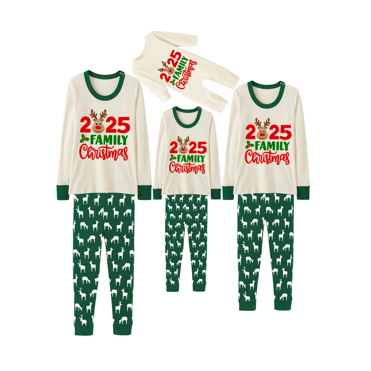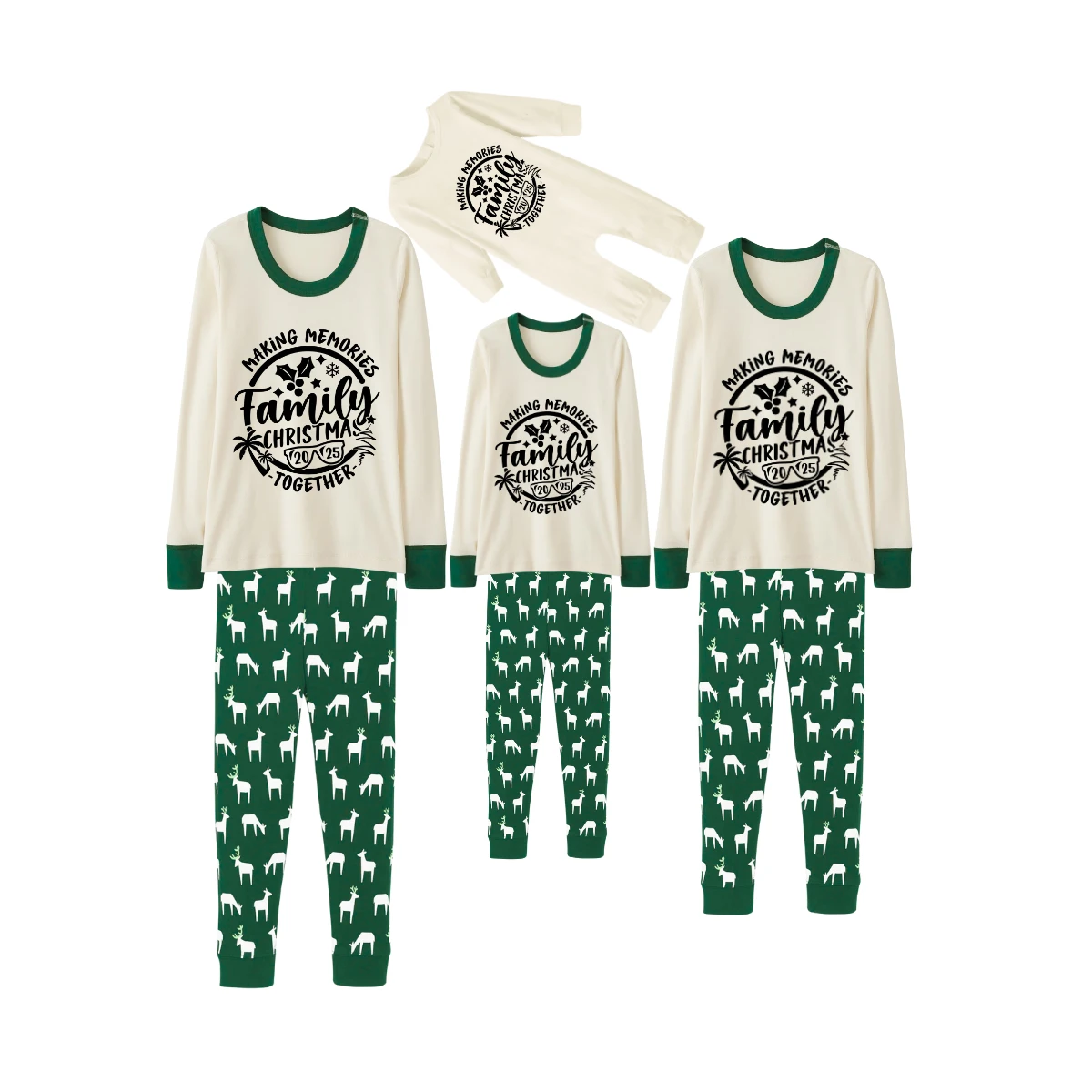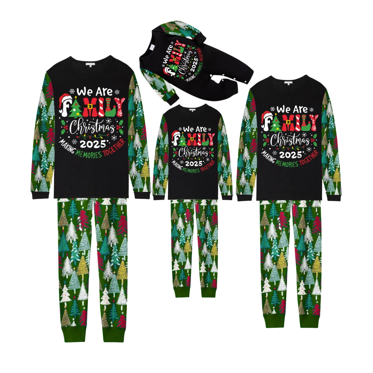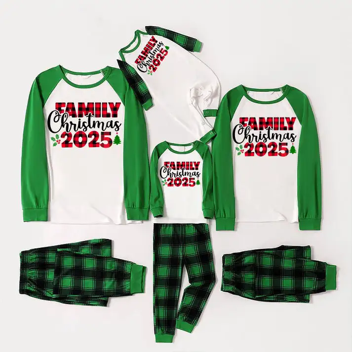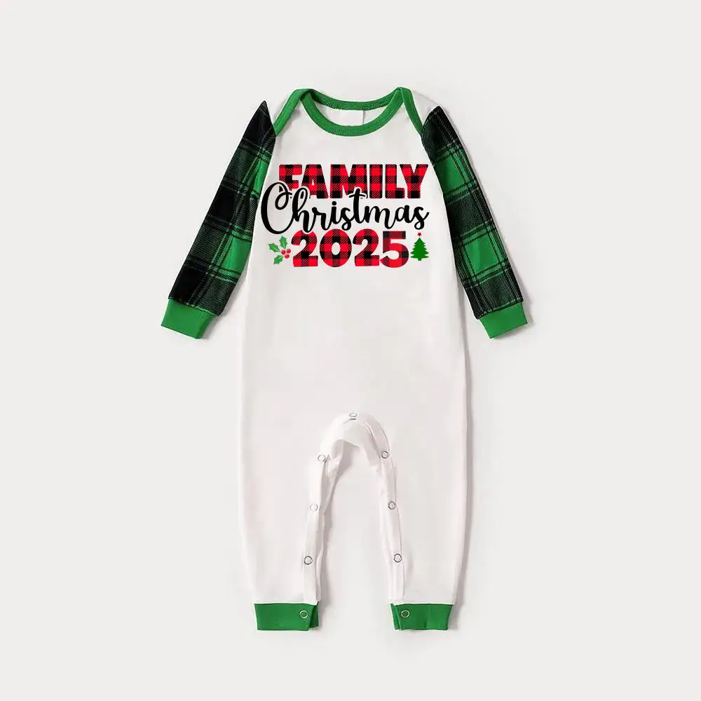 Family Christmas 2025 Text Print Long Sleeve Top With Green & Black Plaid Christmas Matching Pajamas
