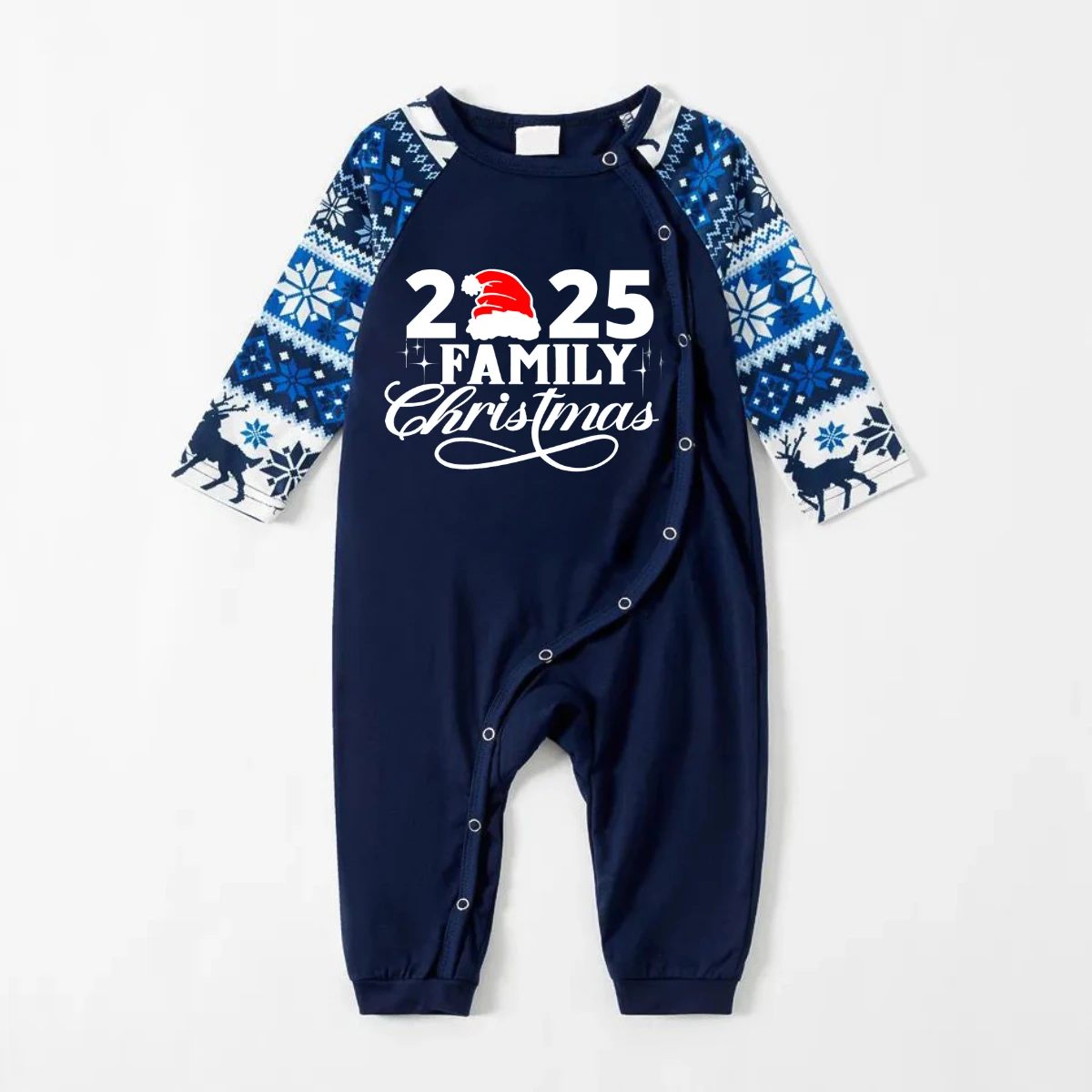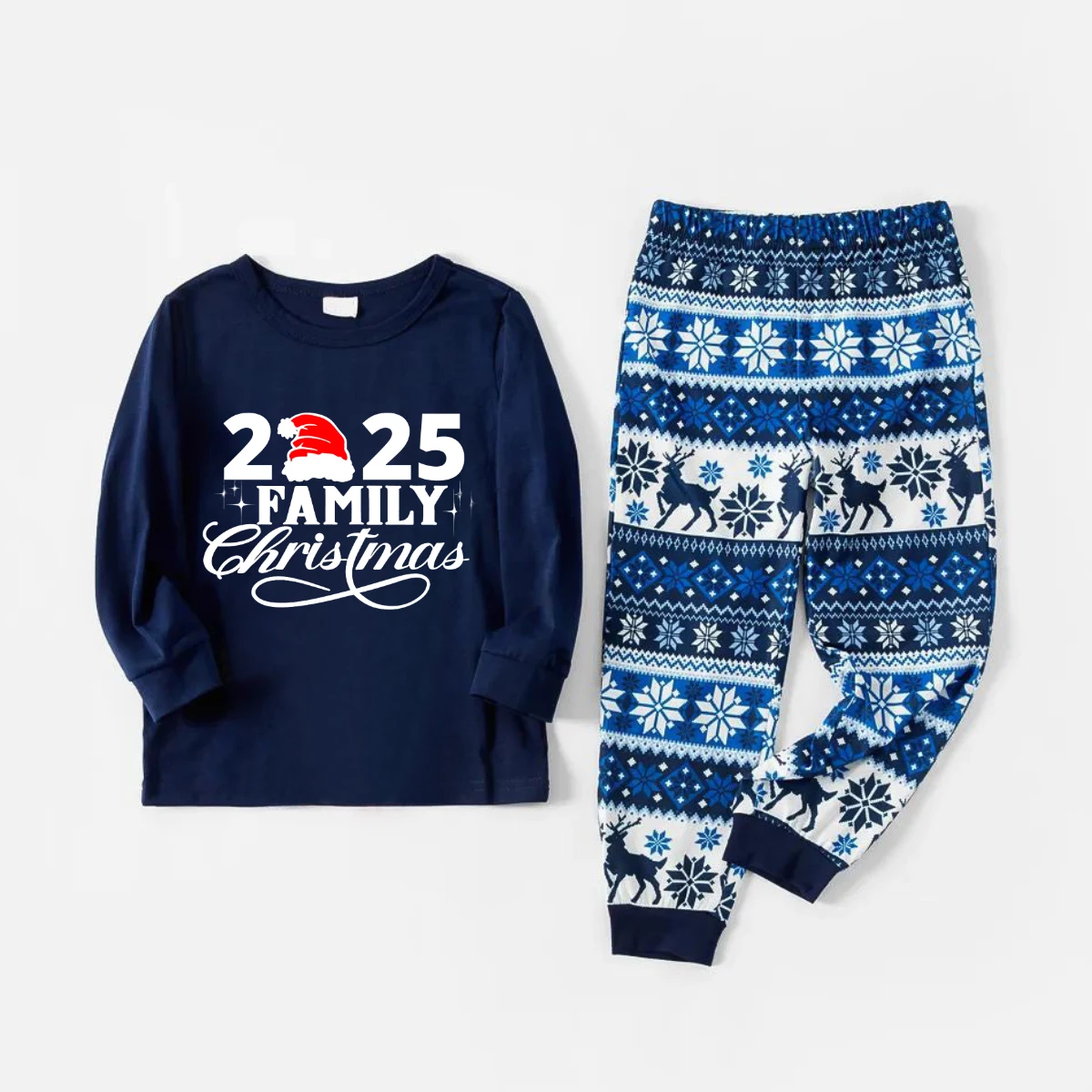 "2025 Family Christmas" Letter Print Blue Family Matching Pajamas Sets