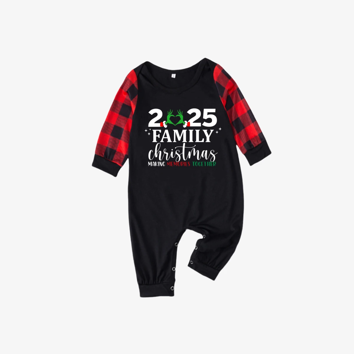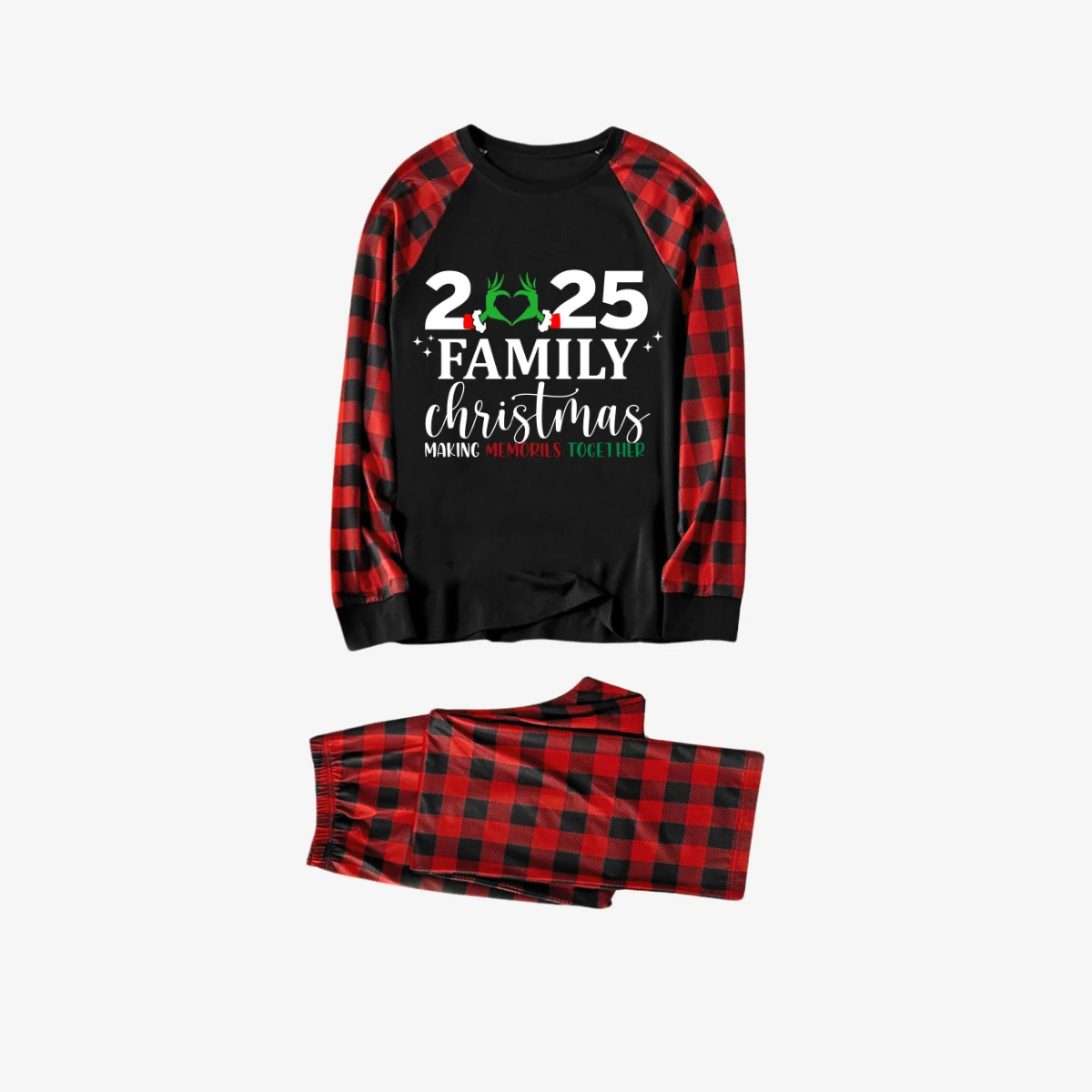 "2025 Family Christmas" Quirky Heart Letter Print Black & Red Plaid Family Matching Black Pajamas