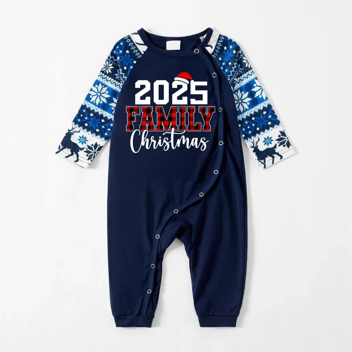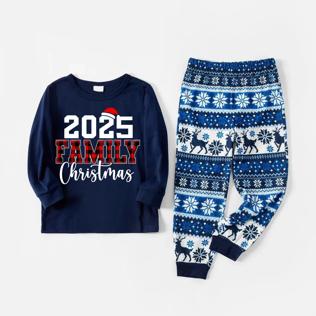 2025 Family Christmas Text Print Blue Family Christmas Matching Pajamas