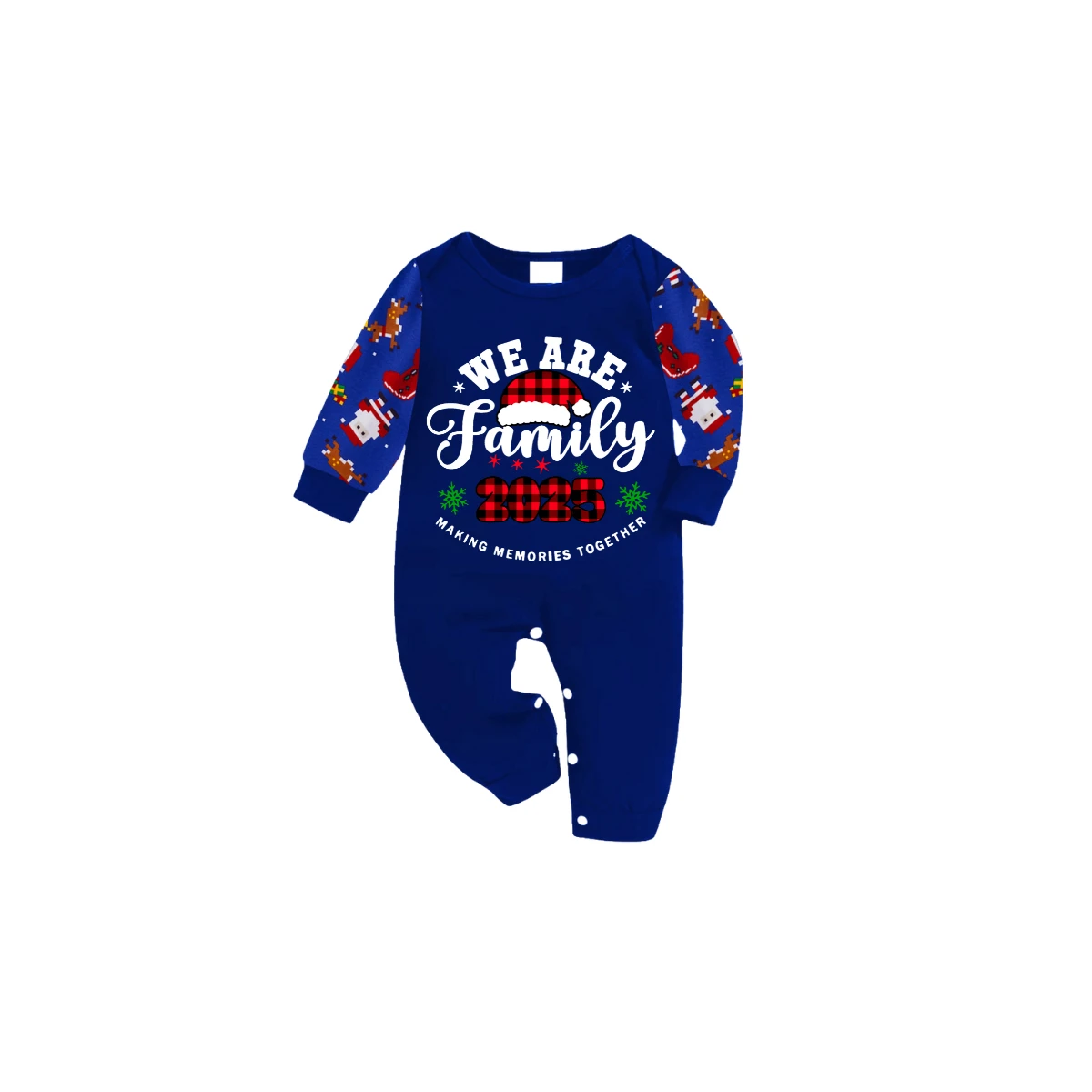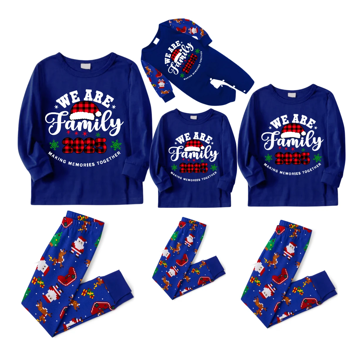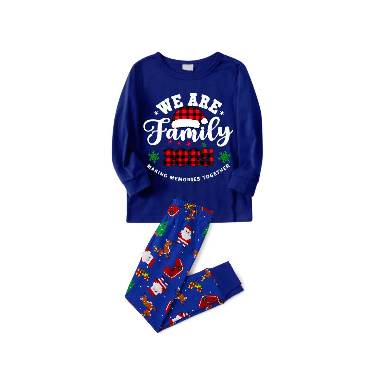 2025 We Are Family Christmas Family Pajamas Set - Blue Top / Blue Santa Print Pants / Blue Santa Print Sleeves