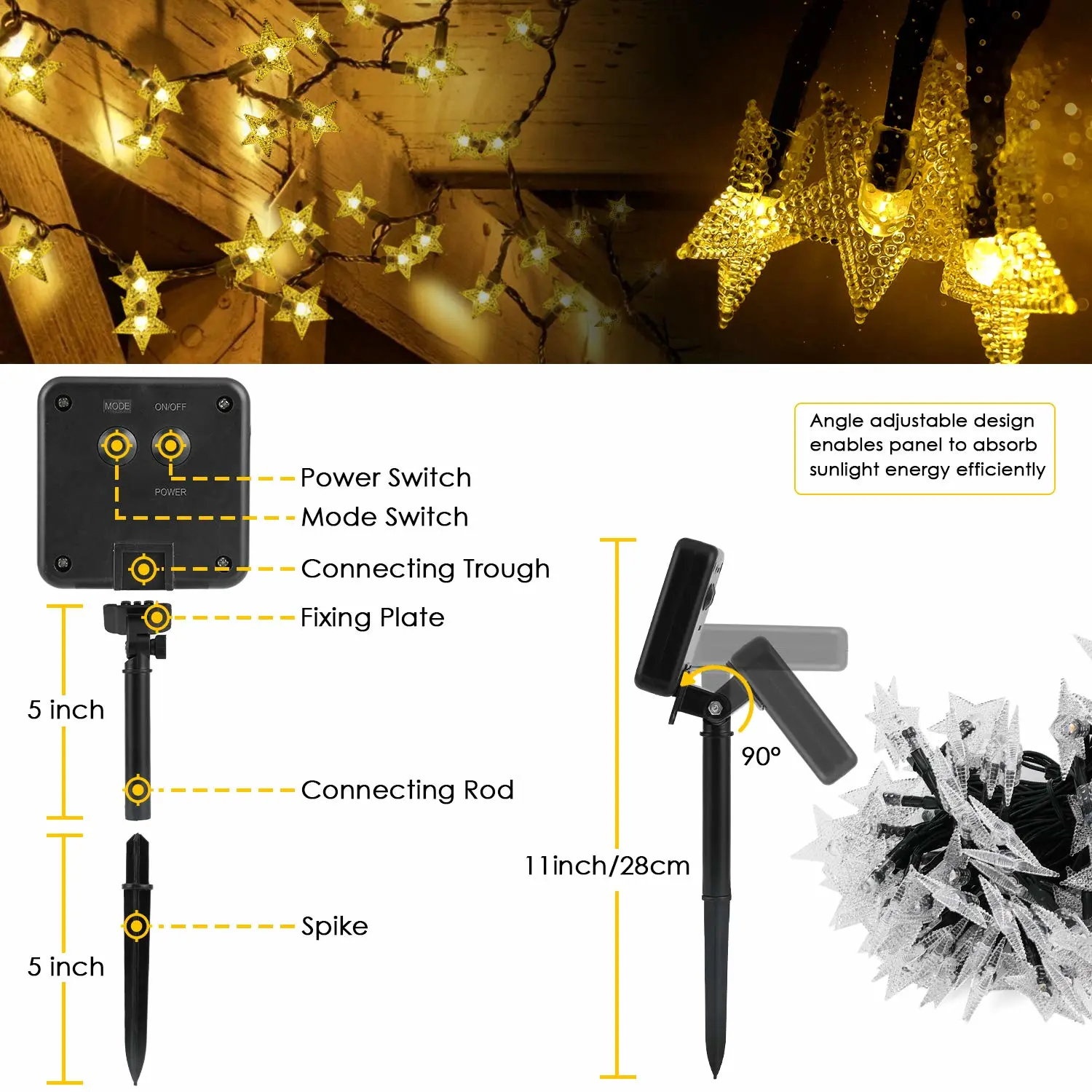 2. Solar Star String Lights Package Includes: 1 x Huacenmy 40ft 100LED solar star twinkle string lights