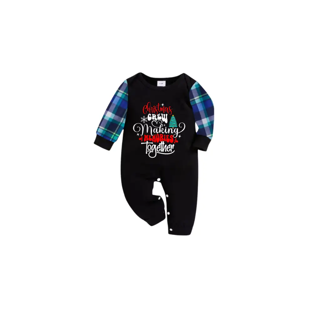 Blue and Green Plaid Christmas Pajamas Set With "Christmas CREW Making MEMORIES Together" Playful Text Print