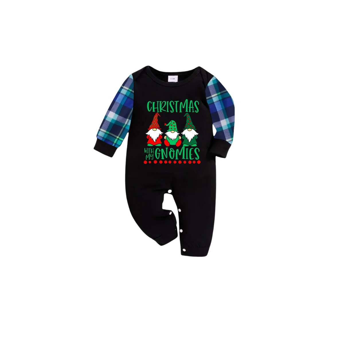 Blue and Green Plaid Christmas Pajamas Set With "Christmas With My Gnomies" Text Print