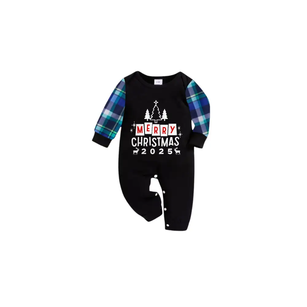 Blue and Green Plaid Christmas Pajamas Set With "MERRY CHRISTMAS 2025" Text Print