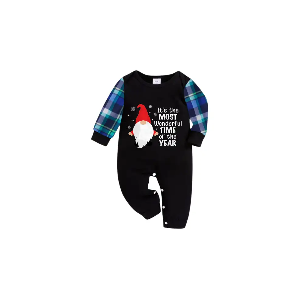 Blue and Green Plaid Christmas Pajamas Set With Santa Claus and "It is the MOST Wonderful TIME of the YEAR" Print