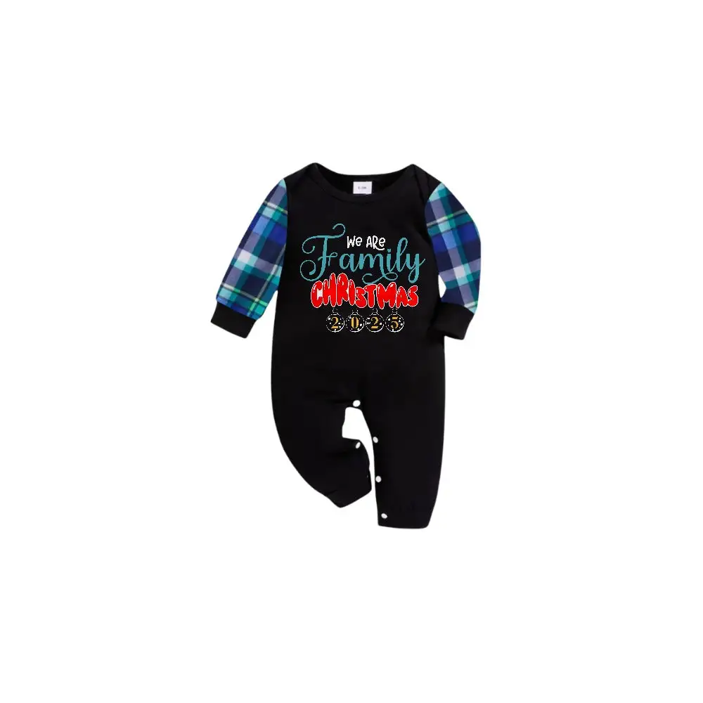 Blue and Green Plaid Christmas Pajamas Set With "We Are Family" and Christmas 2025 Print
