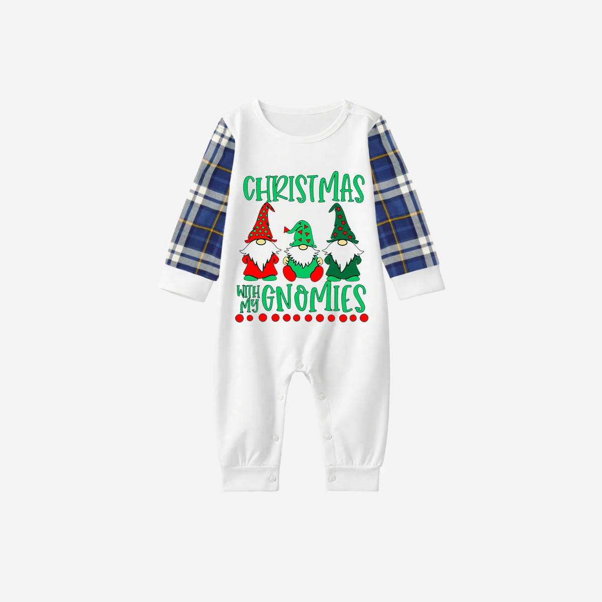 Blue Raglan Top Blue Plaid Christmas Pajamas Set With "Christmas With My Gnomies" Text Print