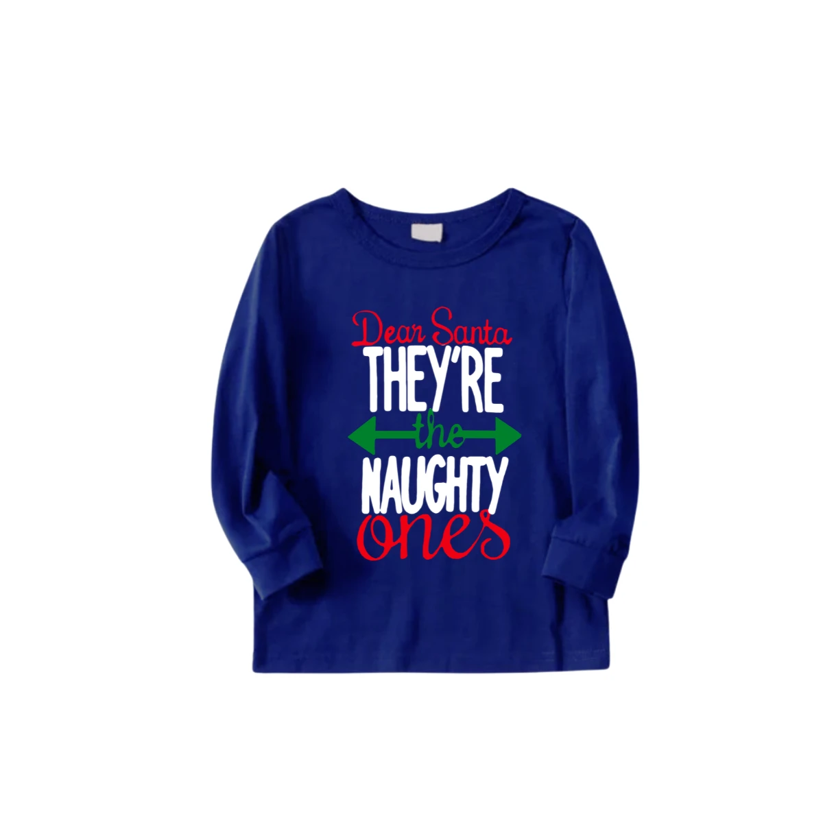 Blue Top with Dear Santa They Are the Naughty Ones Printed And Blue Pants Family Matching Christmas Pajamas Sets