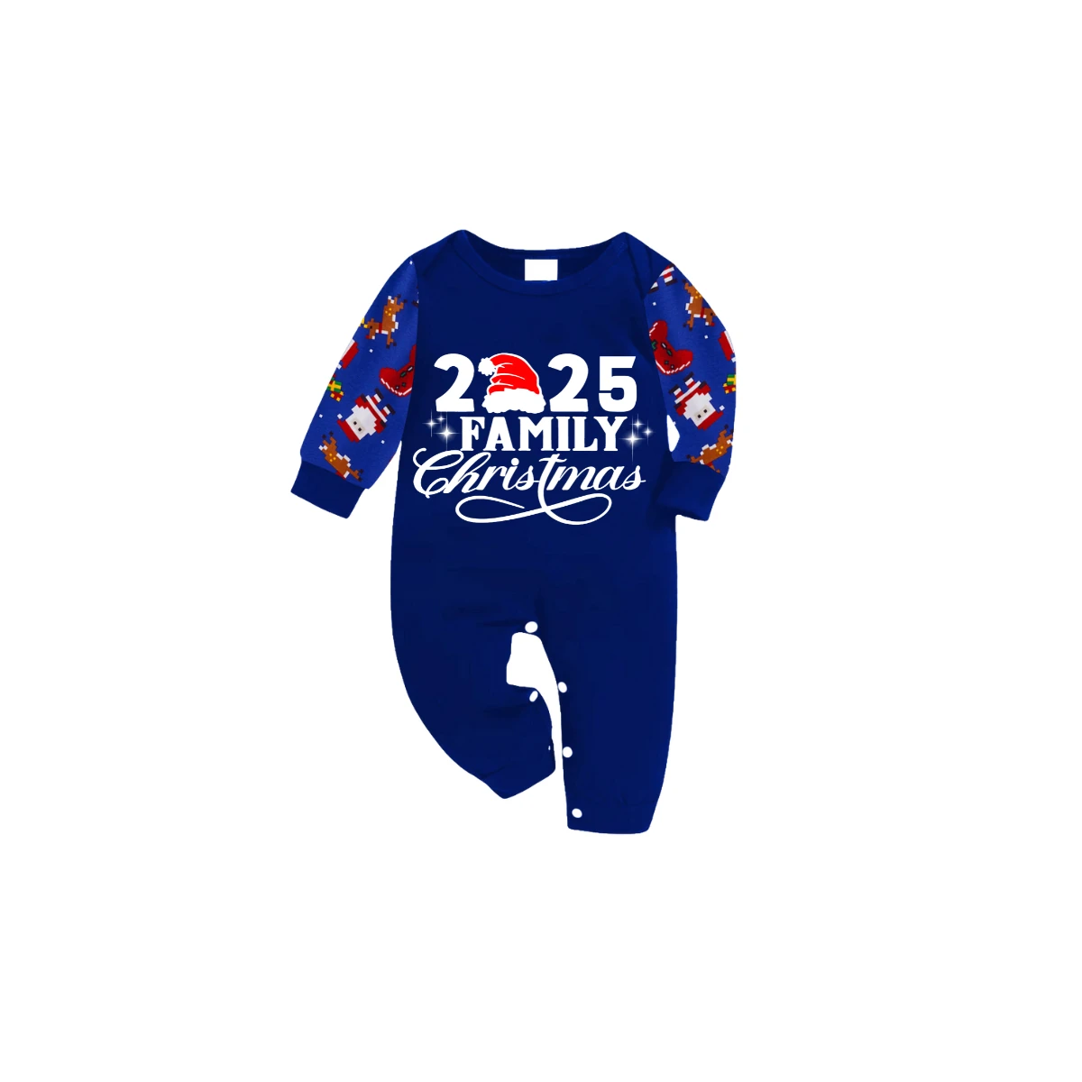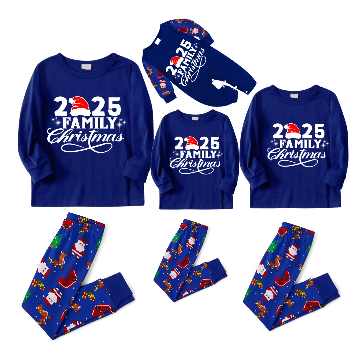 Christmas 2025 Santa Print Family Matching Family Pajamas Set - Blue Top, Blue Pants, Santa Pattern