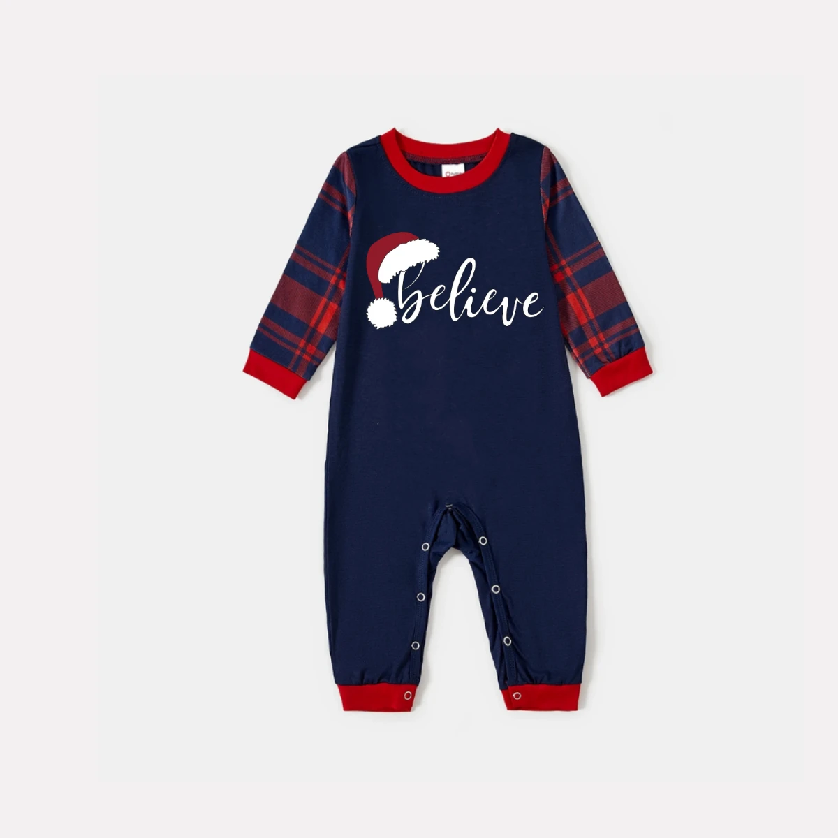 Get ready to cozy up in style with our "Christmas "Believe" Letter Print Blue Long Sleeve Top with Red & Blue Plaid Christmas Family Matching Pajamas". perfect for the festive season. This adorable ensemble is designed for the whole family. including your beloved furry friend.