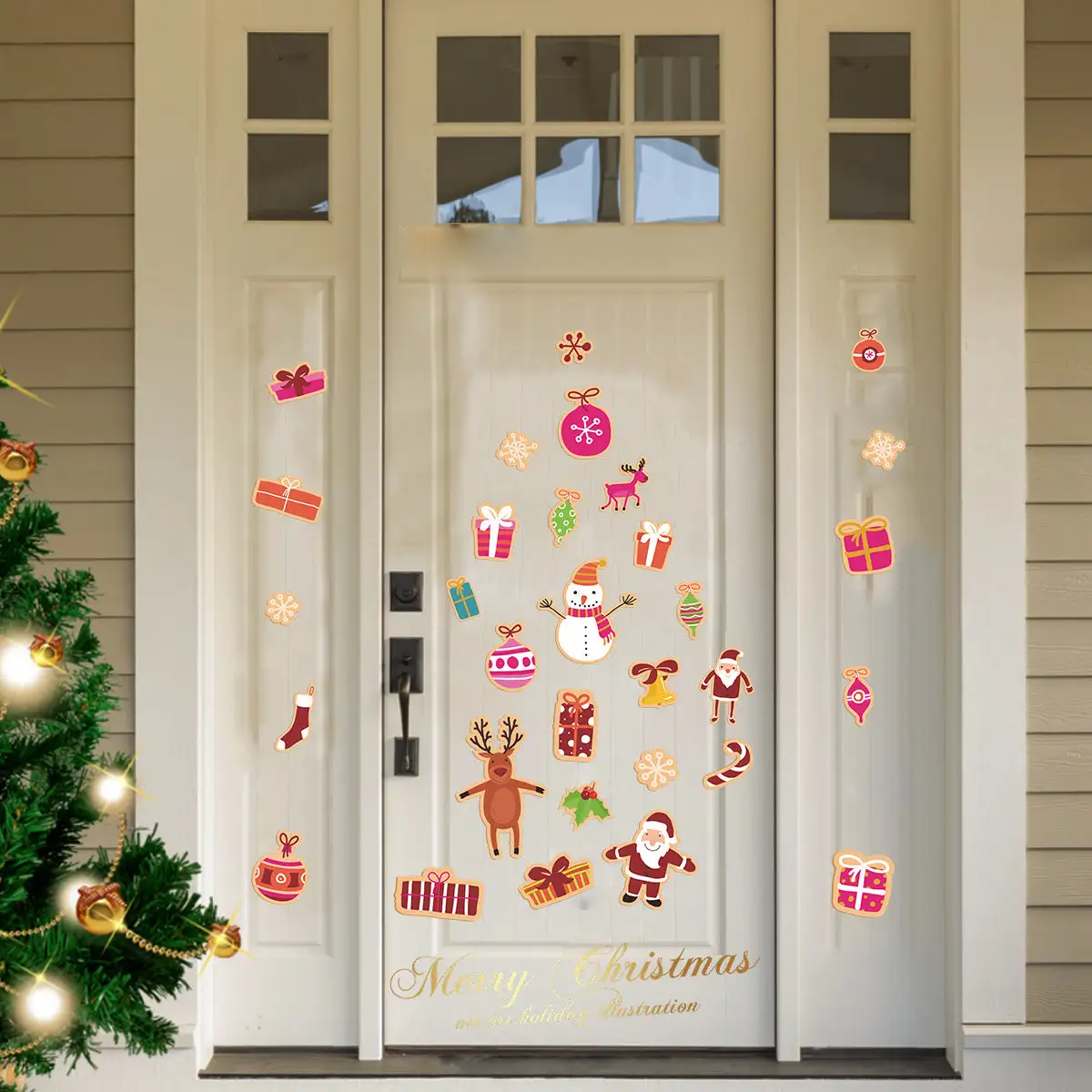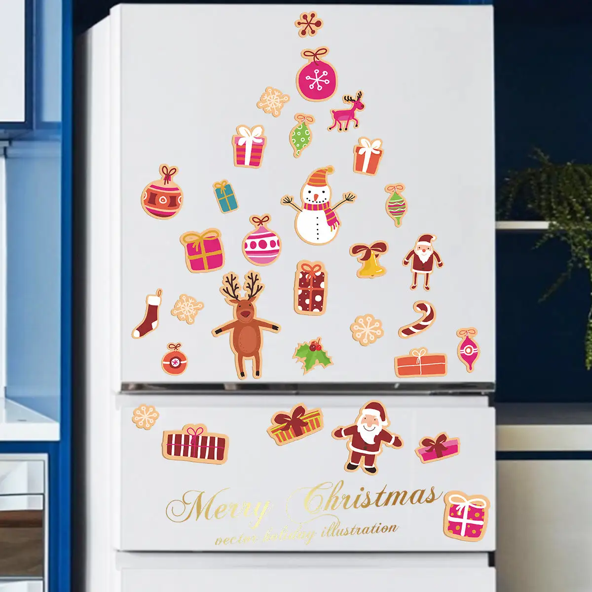 Christmas Children's Room Decoration Cartoon Candy Gift Santa Snowman Deer Wall Window Refrigerator Sticker