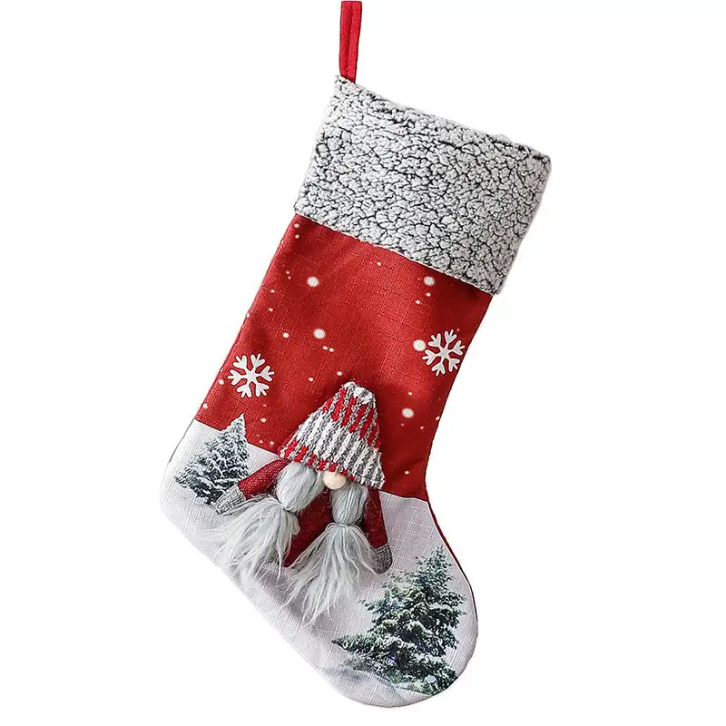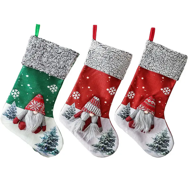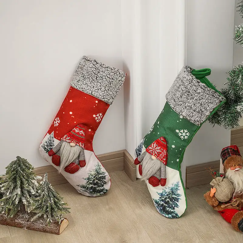 Christmas Decorations Faceless Elderly Girl Gnome Red/Green Christmas Socks Gift Bag