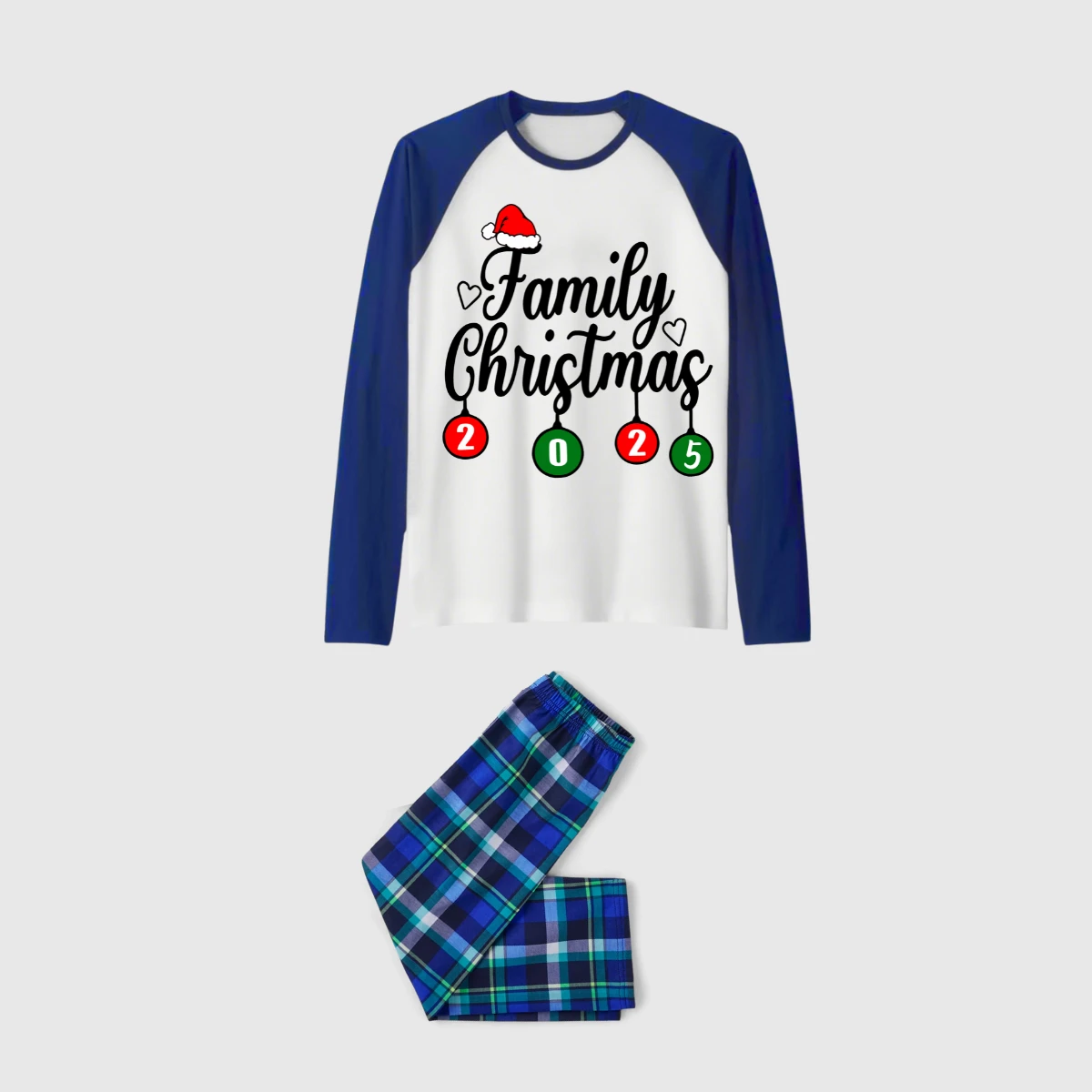 Christmas Family Matching Family Pajamas Set - White Top, Blue Pants, Blue Plaid