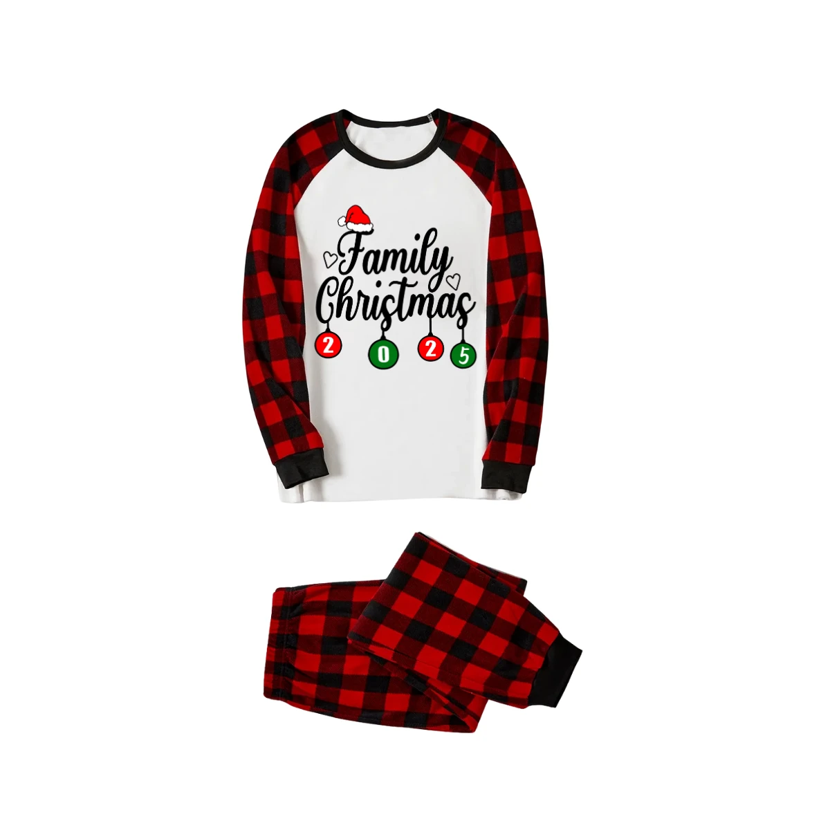 Christmas Family Matching Family Pajamas Set - White Top, Red Pants, Plaid