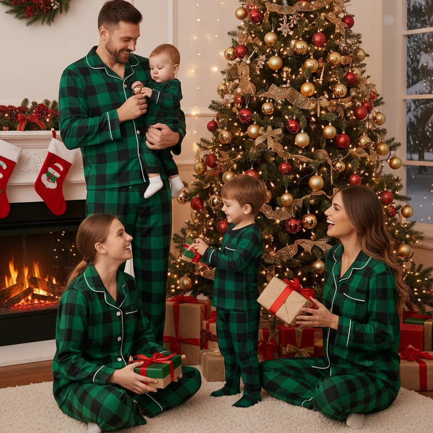 Dress the whole family in matching festive cheer! Our Classic Plaid Christmas Pajamas feature soft. breathable fabric for ultimate comfort.