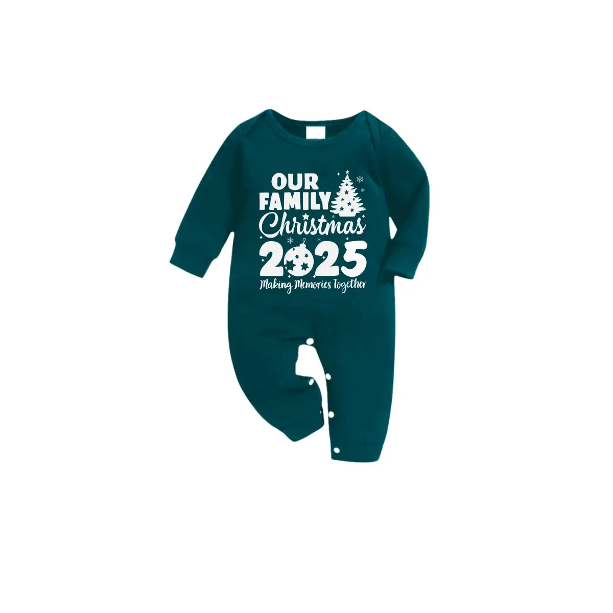 Christmas Family Matching Pajamas-Dark Green&Deer Patterned Pjs Set with "Our Family Christmas 2025" Print